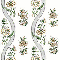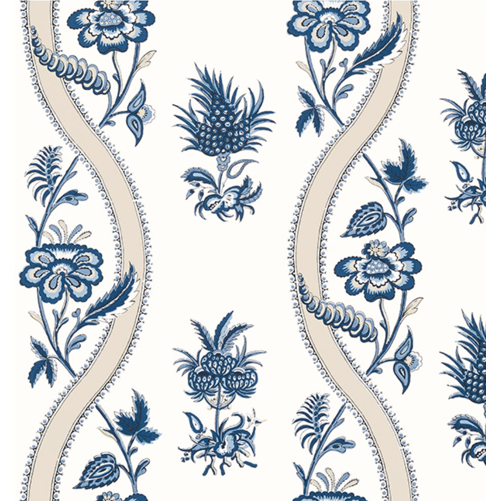 Two made to order drapery panels in Thibaut's Ribbon Floral fabric in the following lengths: