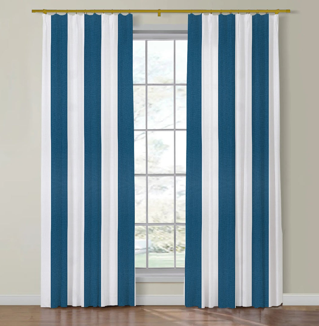 Two made to order drapery panels in Thibaut's Bergamo Stripe fabric in the following lengths: