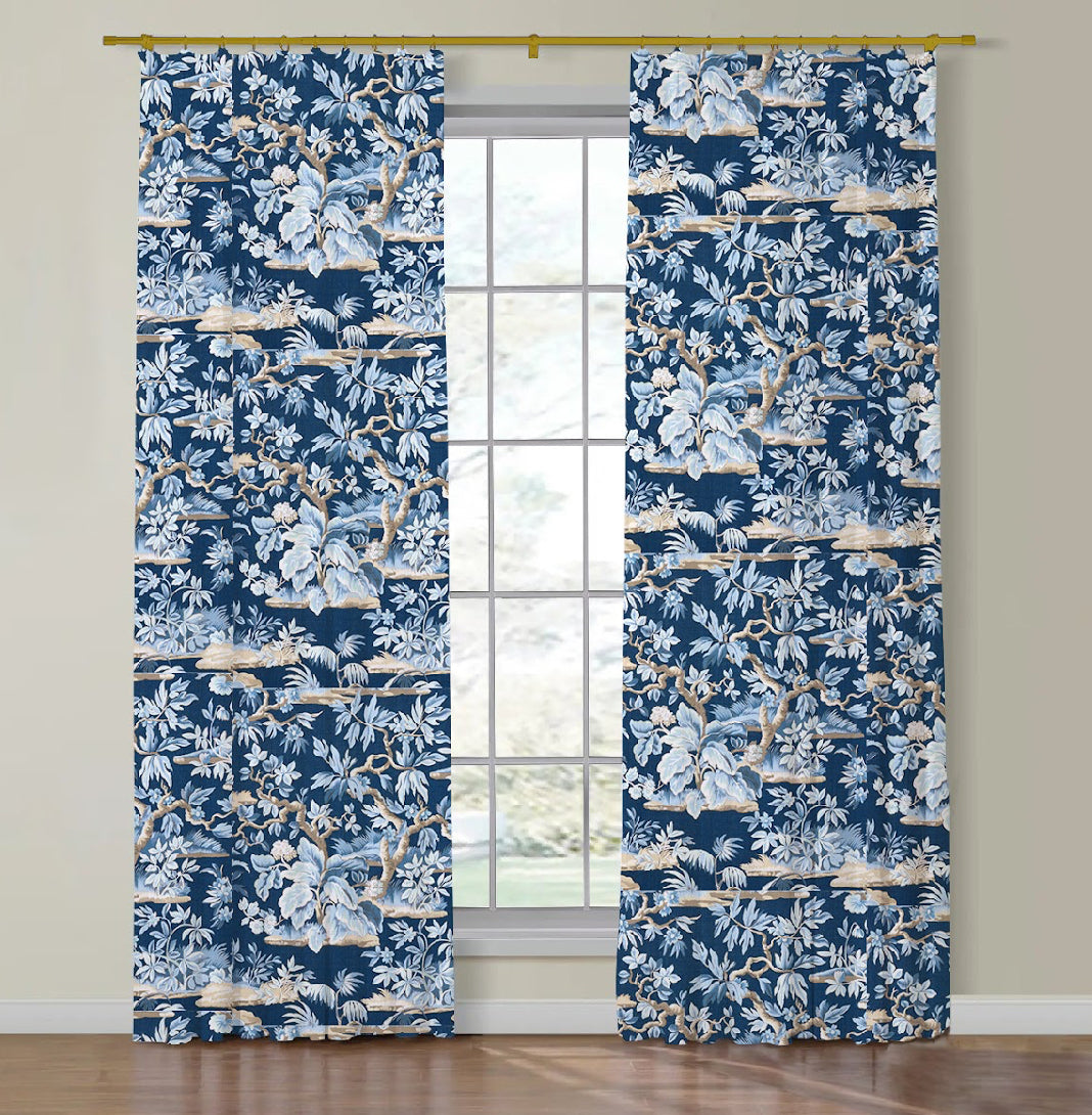 Price is for two single widths panels. If you require custom length, double width, or another custom finish, feel free reach out to us at contact@fabricbistro.com. Please note, there is a 1/4" industry standard difference allowance from the measurements stated in the description. Please note, pattern placement may vary from the one shown on the photo depending on the finished drapery size (for example, there may be more or less pattern repeats).