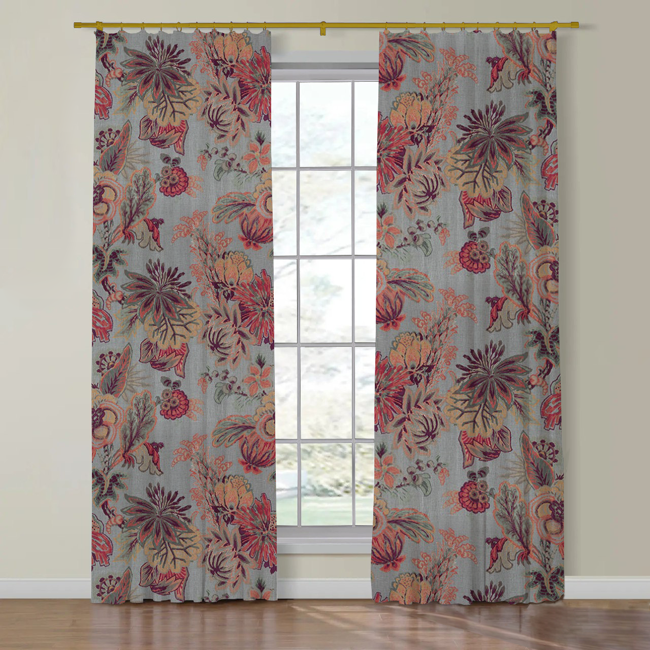 Set of Two Made to Order Thibaut Floral Gala Side Drapery Panels