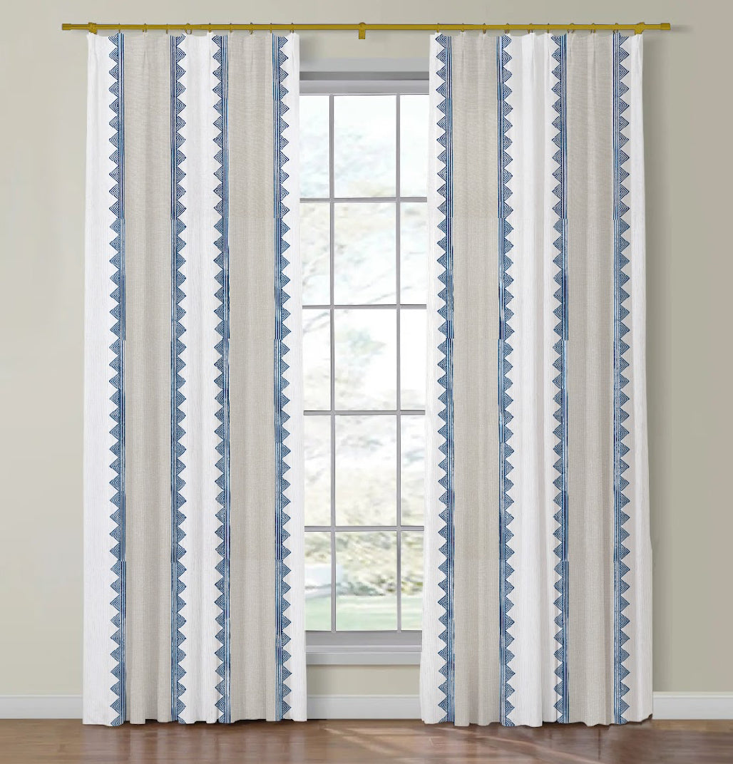Price is for two single widths panels. If you require custom length, double width, or another custom finish, or pattern, feel free reach out to us at contact@fabricbistro.com. Please note, there is a 1/4" industry standard difference allowance from the measurements stated in the description. Please note, pattern placement may vary from the one shown on the photo depending on the finished drapery size (for example, there may be more or less pattern repeats).
