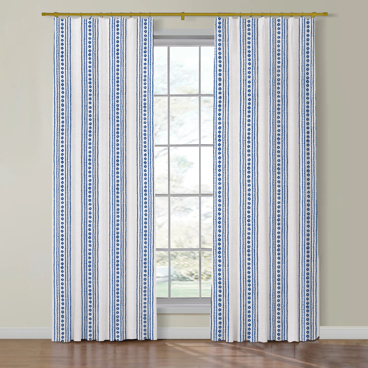 Price is for two single widths panels. If you require custom length, double width, or another custom finish, feel free reach out to us at contact@fabricbistro.com. Please note, there is a 1/4" industry standard difference allowance from the measurements stated in the description. Please note, pattern placement may vary from the one shown on the photo depending on the finished drapery size (for example, there may be more or less pattern repeats).