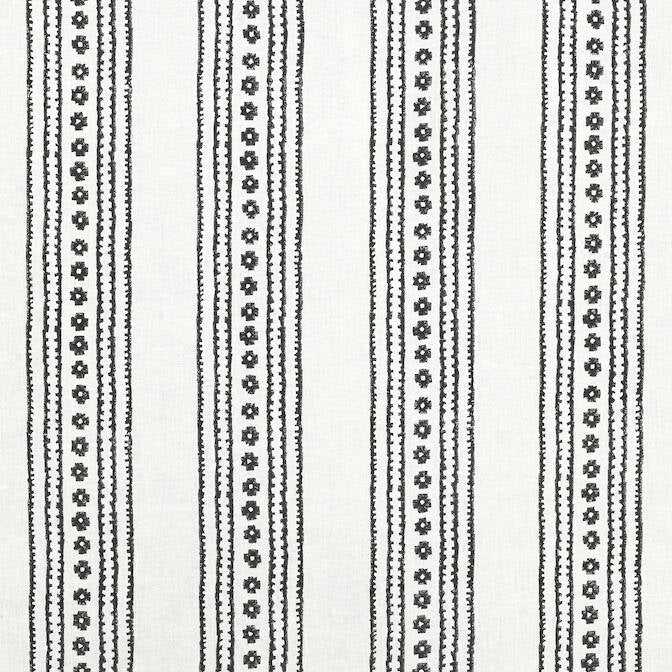 Two made to order drapery panels in Thibaut's New Haven Stripe fabric in the following lengths: