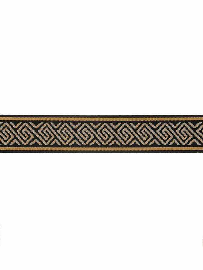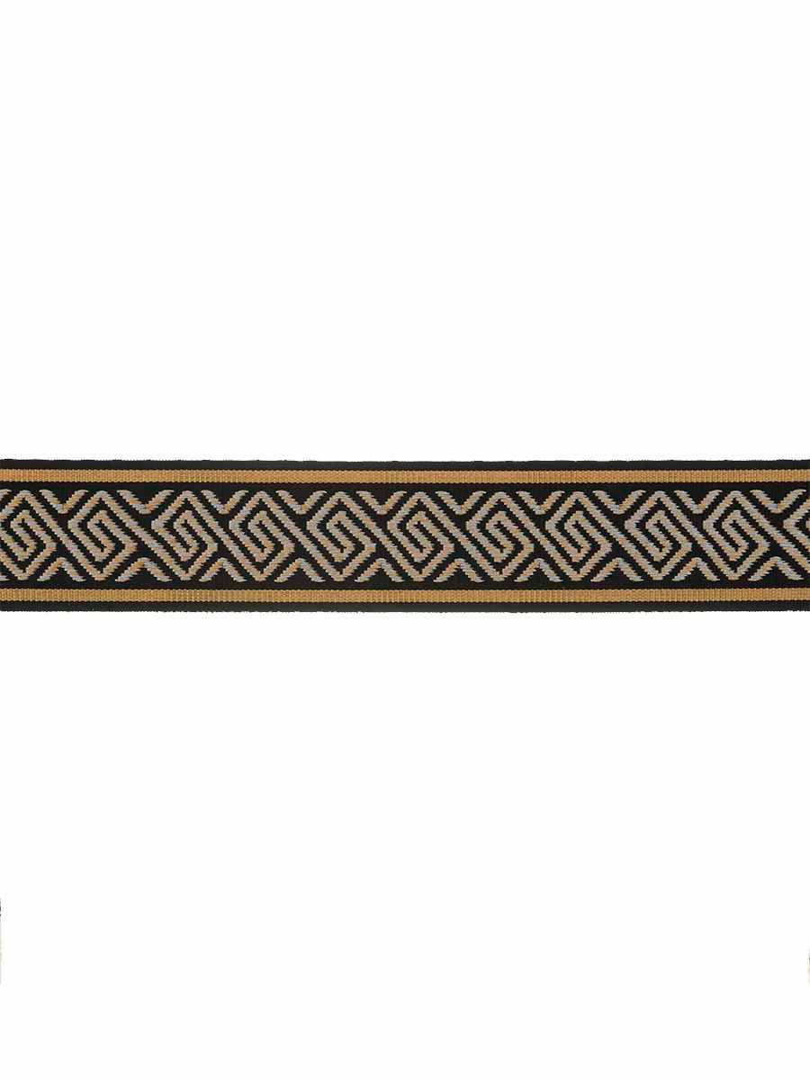 2.25" Wide Black Ivory Mustard Gold Geometric Drapery Tape Trim