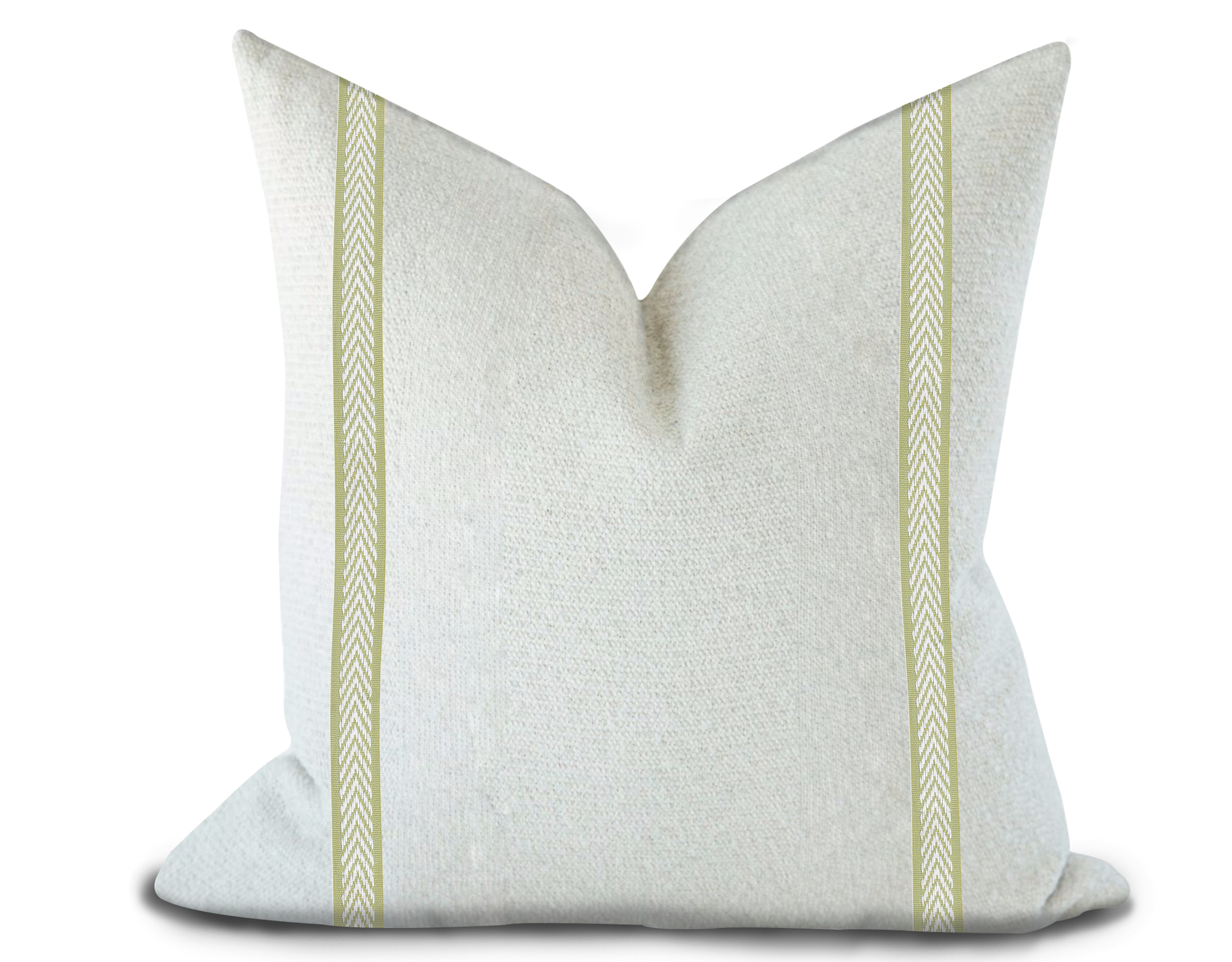 Custom Made Pillow Cover with Thibaut Westport Tape in Spring Green / Self-Piping