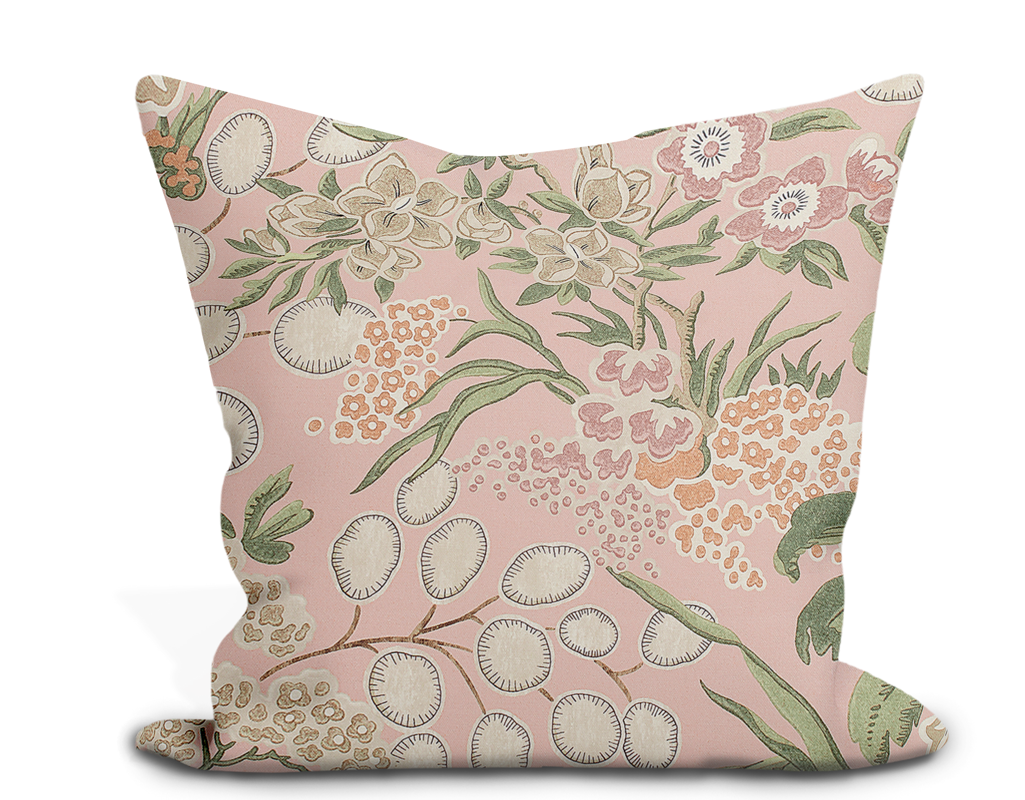 Custom Pillow Cover in Floral Botanical Thibaut Meadow in Blush - One Side