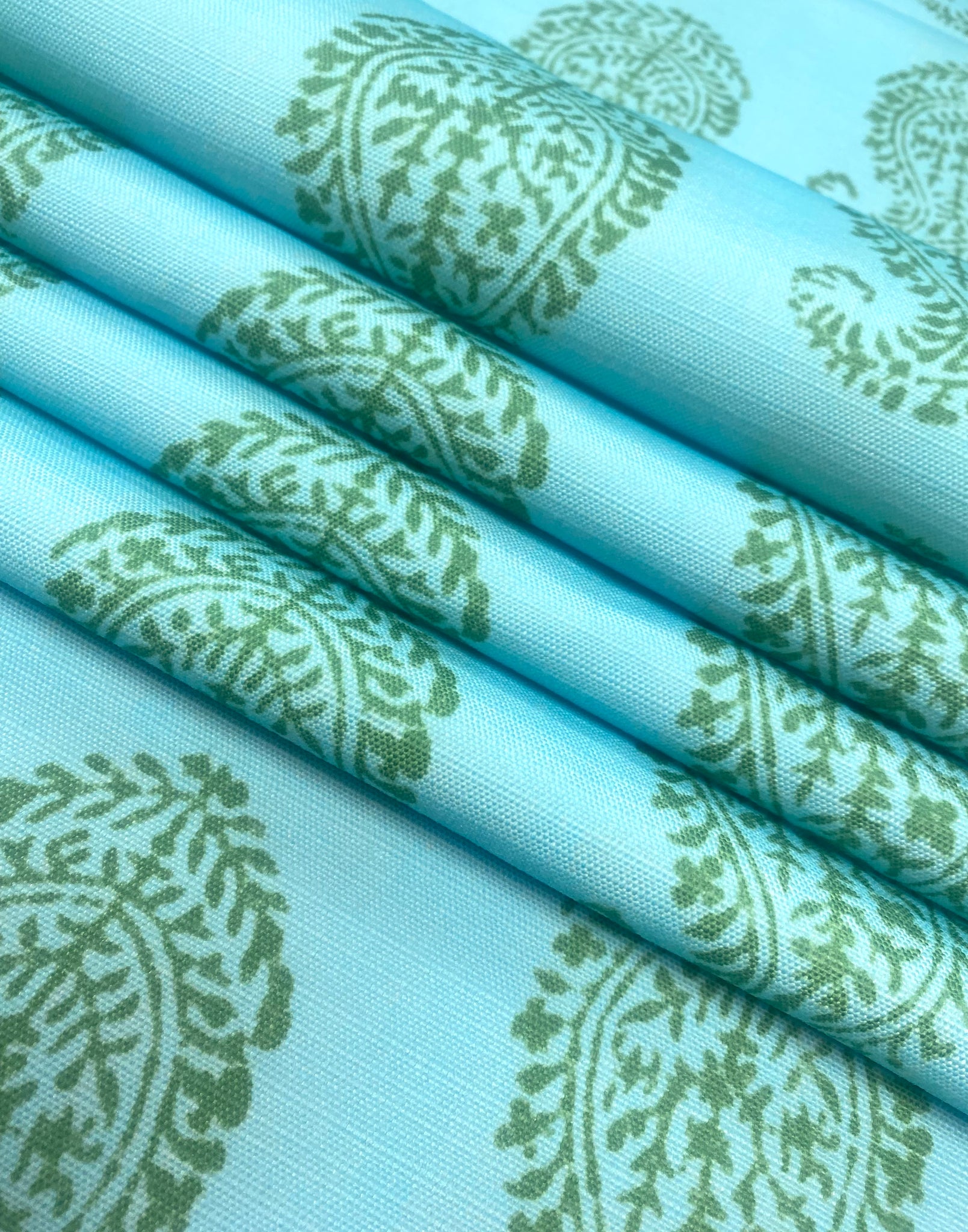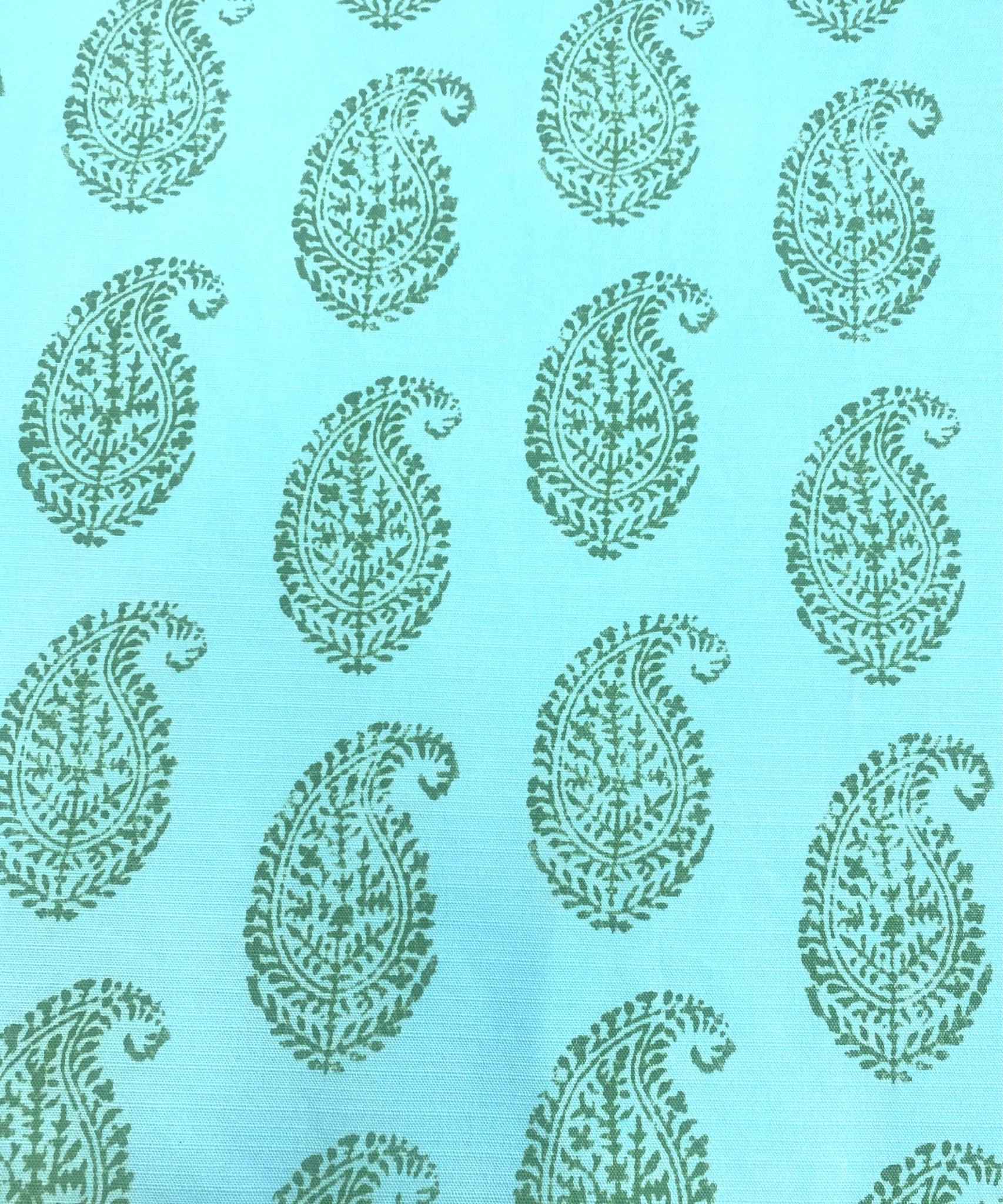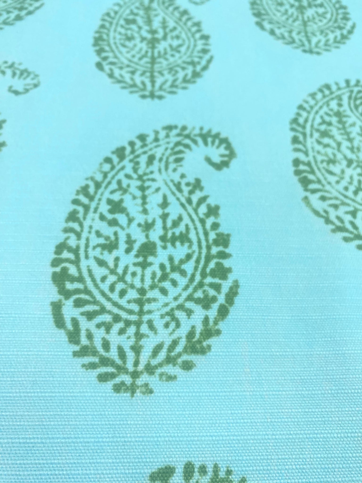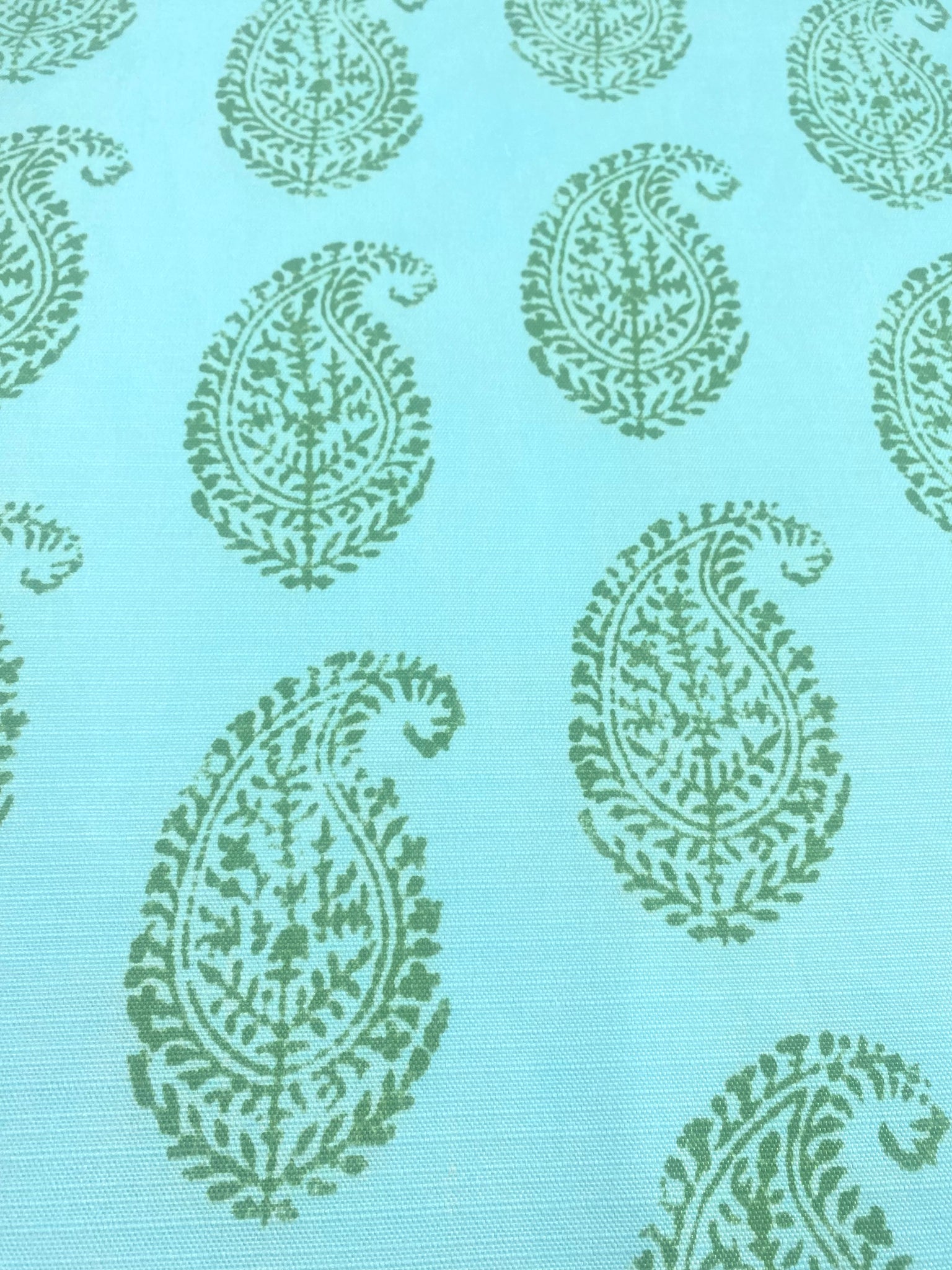 1.6 yard 54” wide Peter Dunham Kashmir Paisley outdoor upholstery drapery fabric in blue and green. Price is per entire piece.