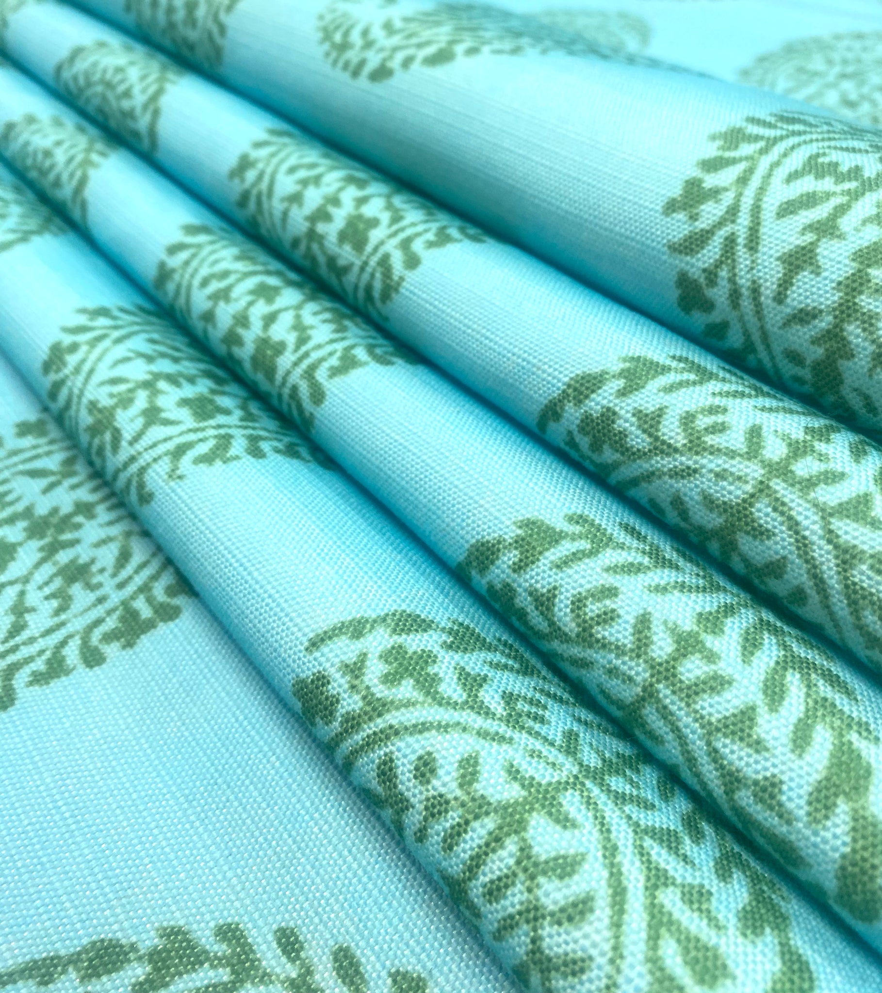 This fabric is Teflon treated to allow for water and soil resistance, with a high color light fastness. We recommend that items are protected from weather conditions to preserve the life of the fabric.