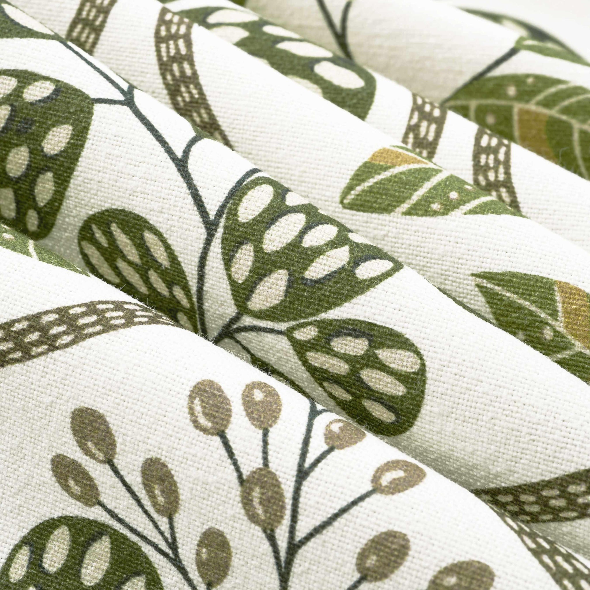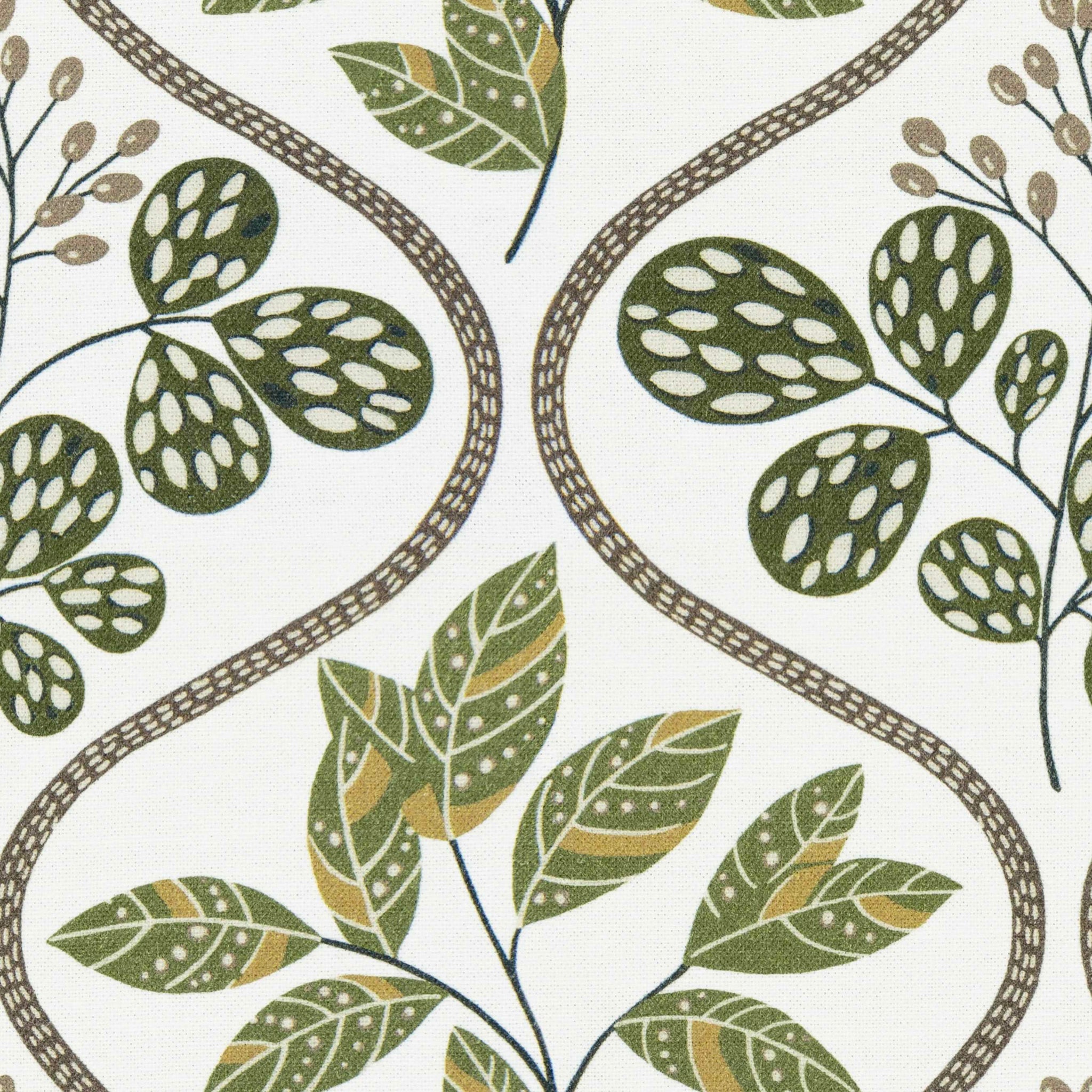 Cotton Cream Olive Green Brown Mustard Floral Upholstery Drapery Fabric FB