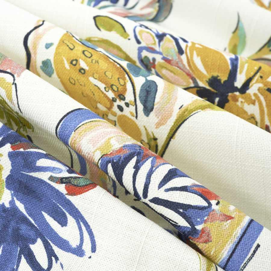 Cotton Ivory Navy Blue Green Mustard Red Teal Floral Upholstery Drapery Fabric