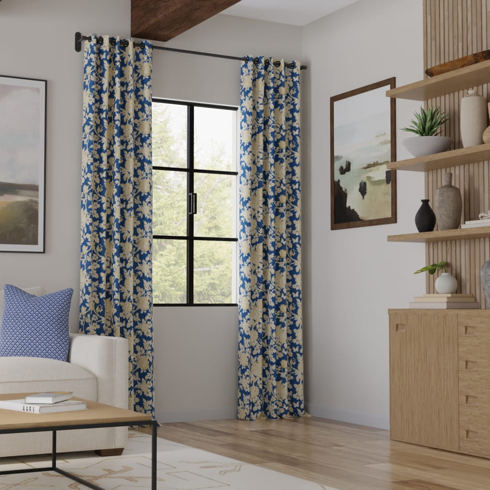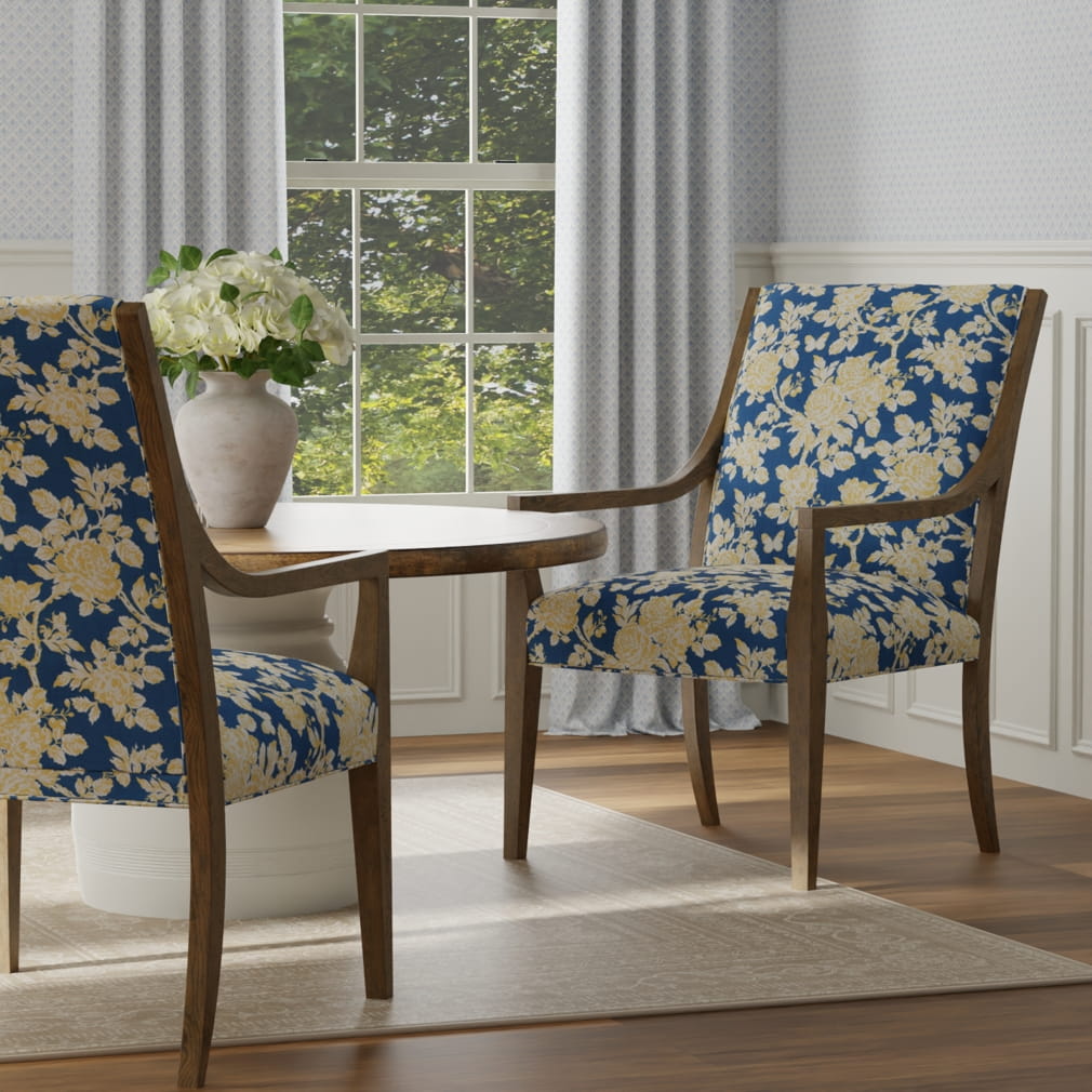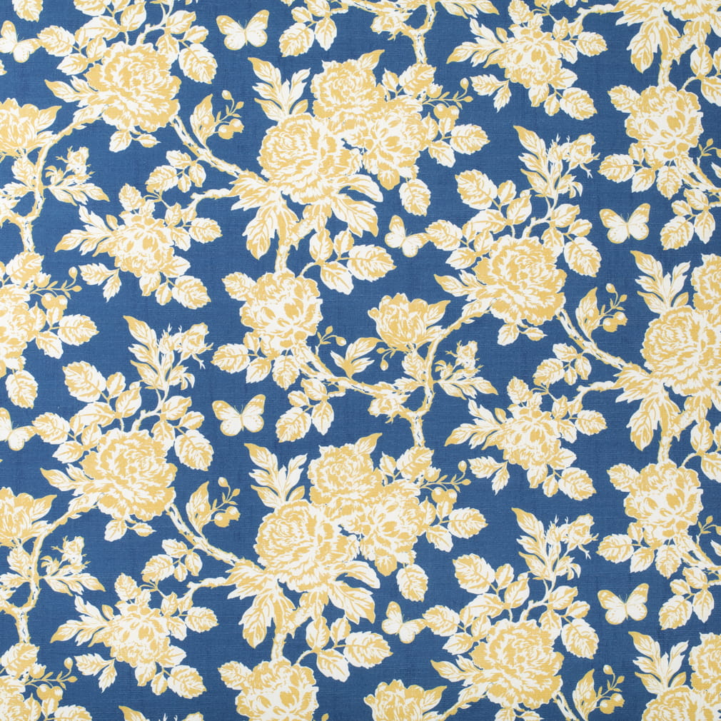 Cotton Navy Blue Mustard Yellow Gold White Floral Upholstery Drapery Fabric