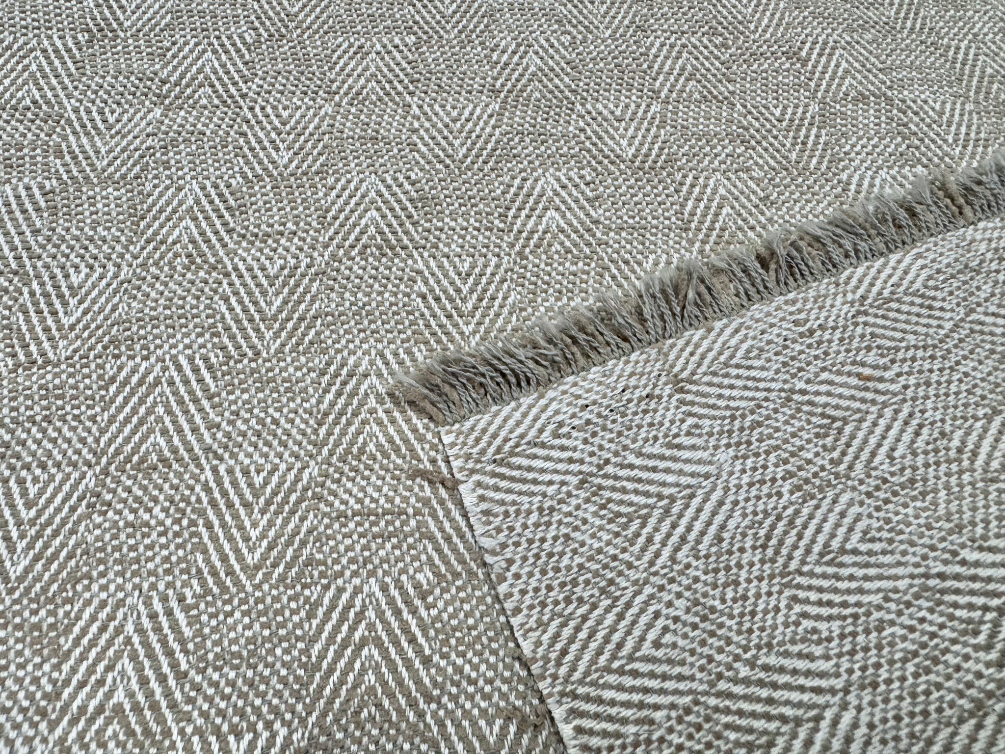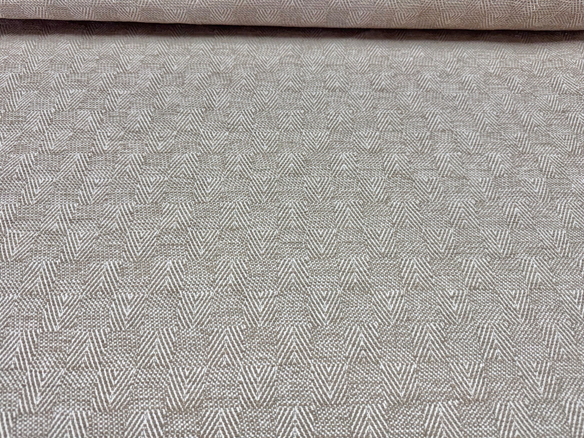 57” wide Crypton Mills zig-zag chevron water proof reversible in beige upholstery fabric .
