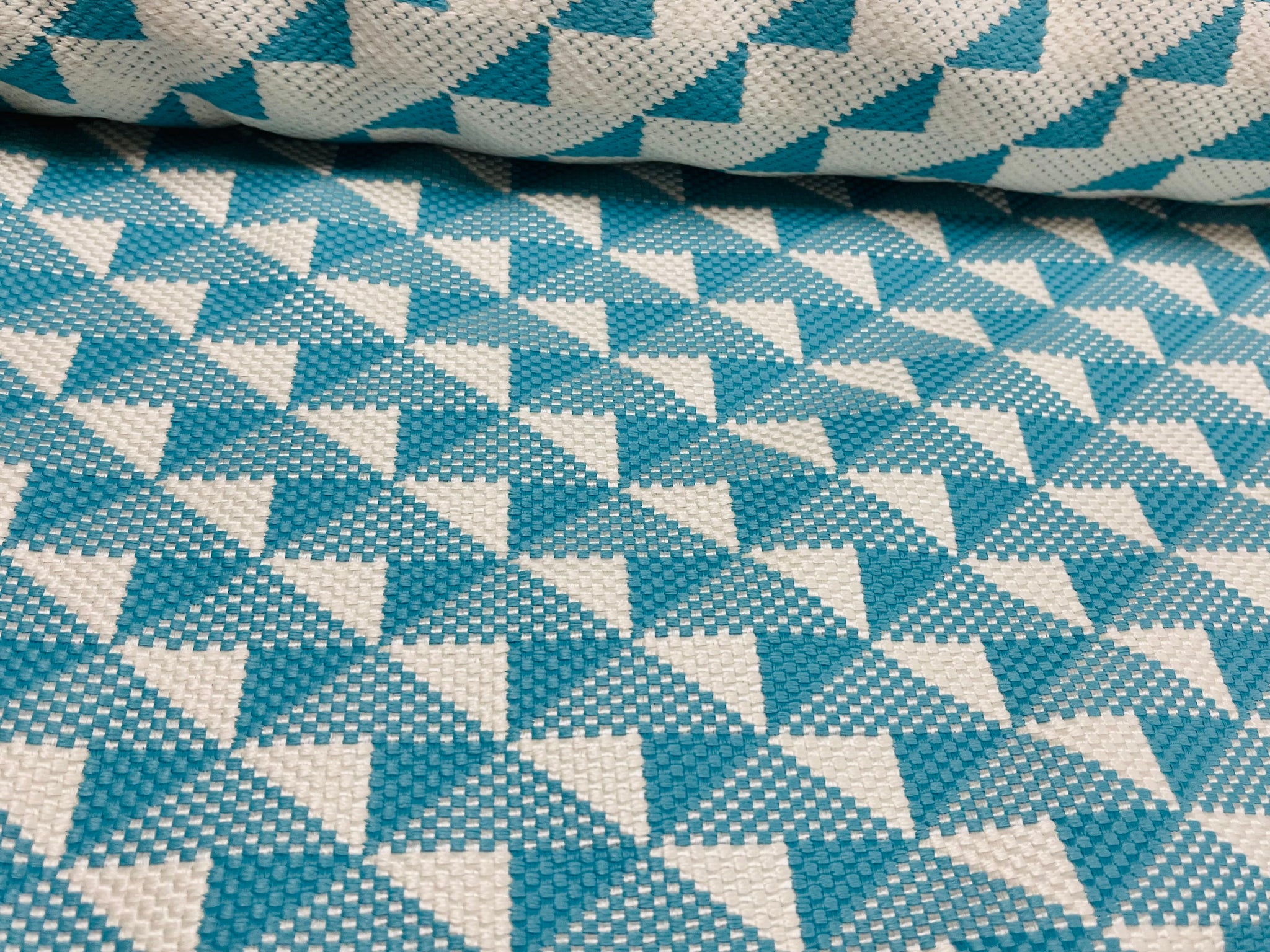 DESIGNERS GUILD TARAKAN TURQUOISE BLUE WHITE GEOMETRIC ABSTRACT OUTDOOR FABRIC Azure FDG3049