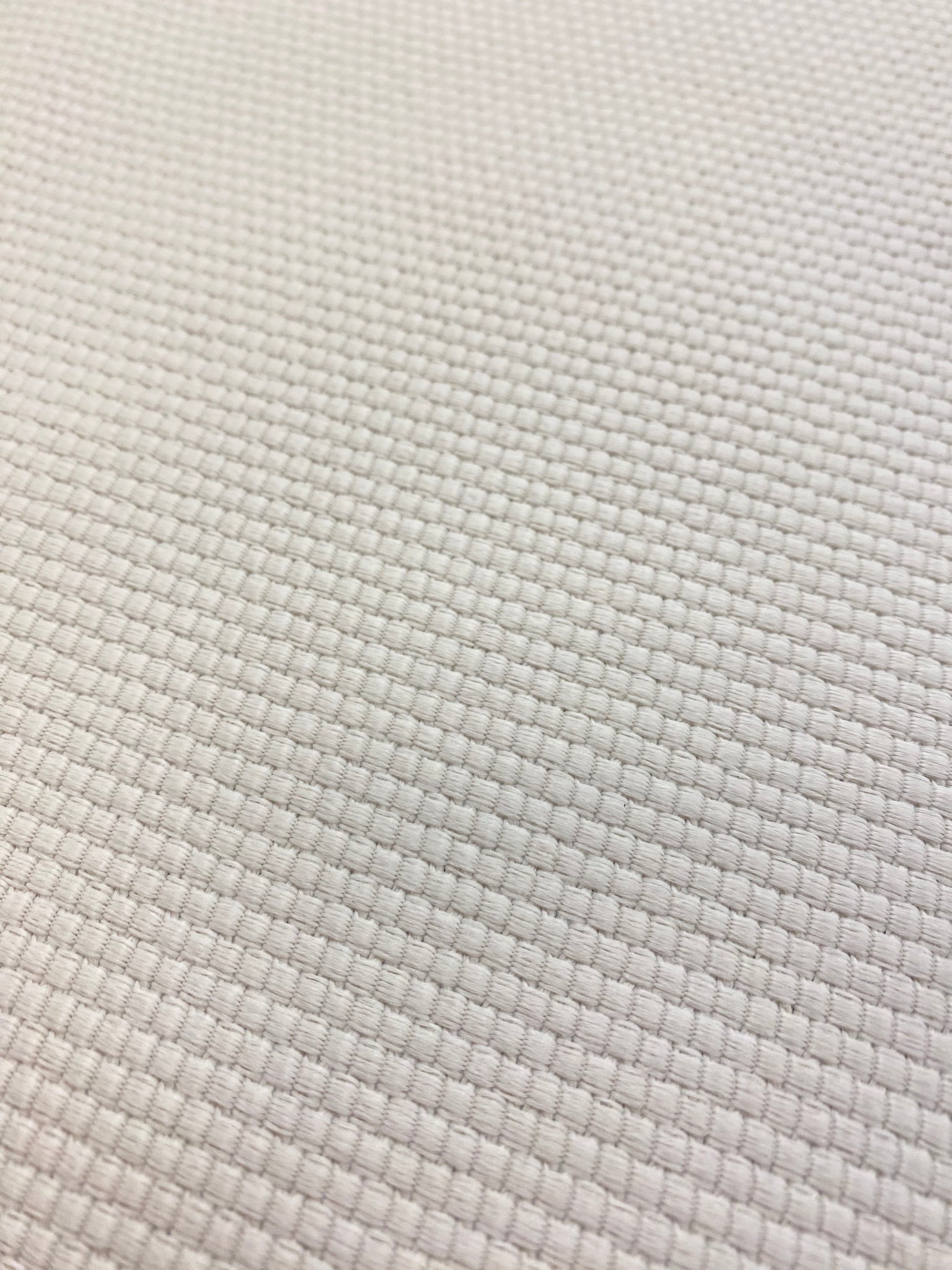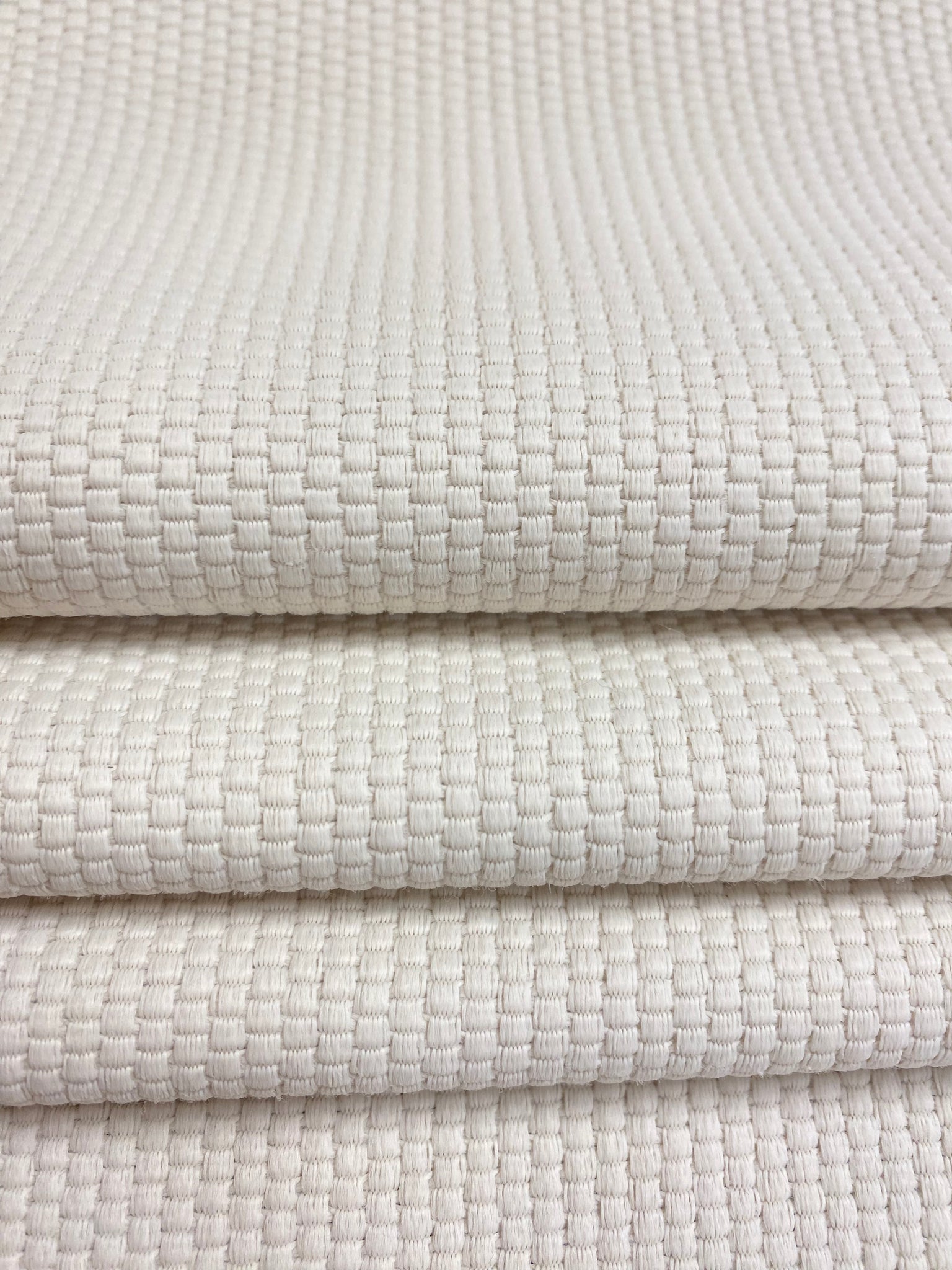55" wide designer indoor outdoor polypropylene basketweave upholstery fabric in cream. Price is per yard. Let us know if you need more than available in our store.