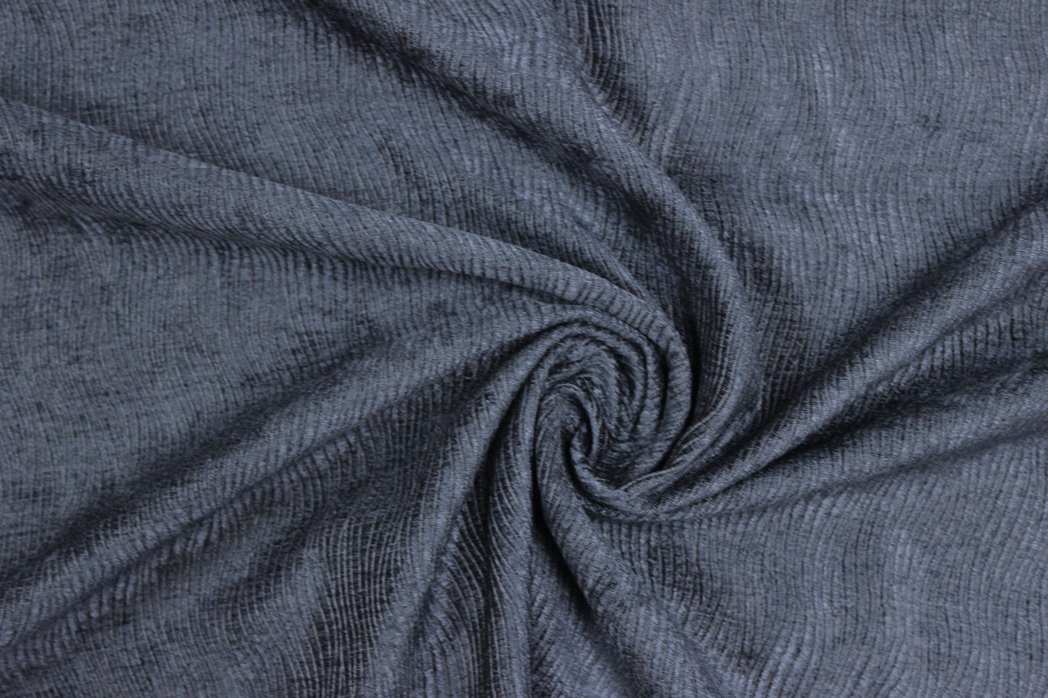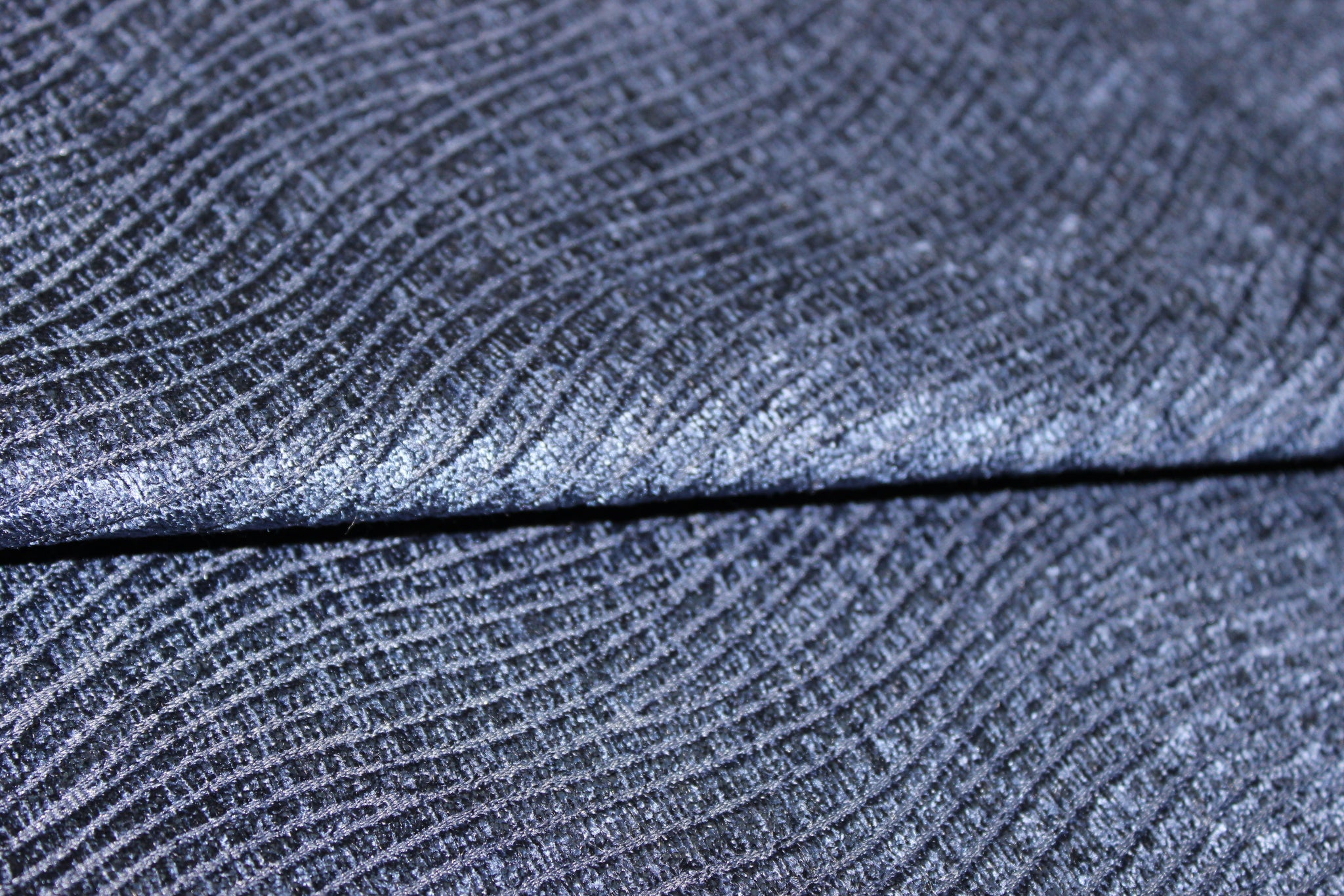 This navy blue textured velvet is ideal for upholstery. The width of this fabric is 56." Price per yard.