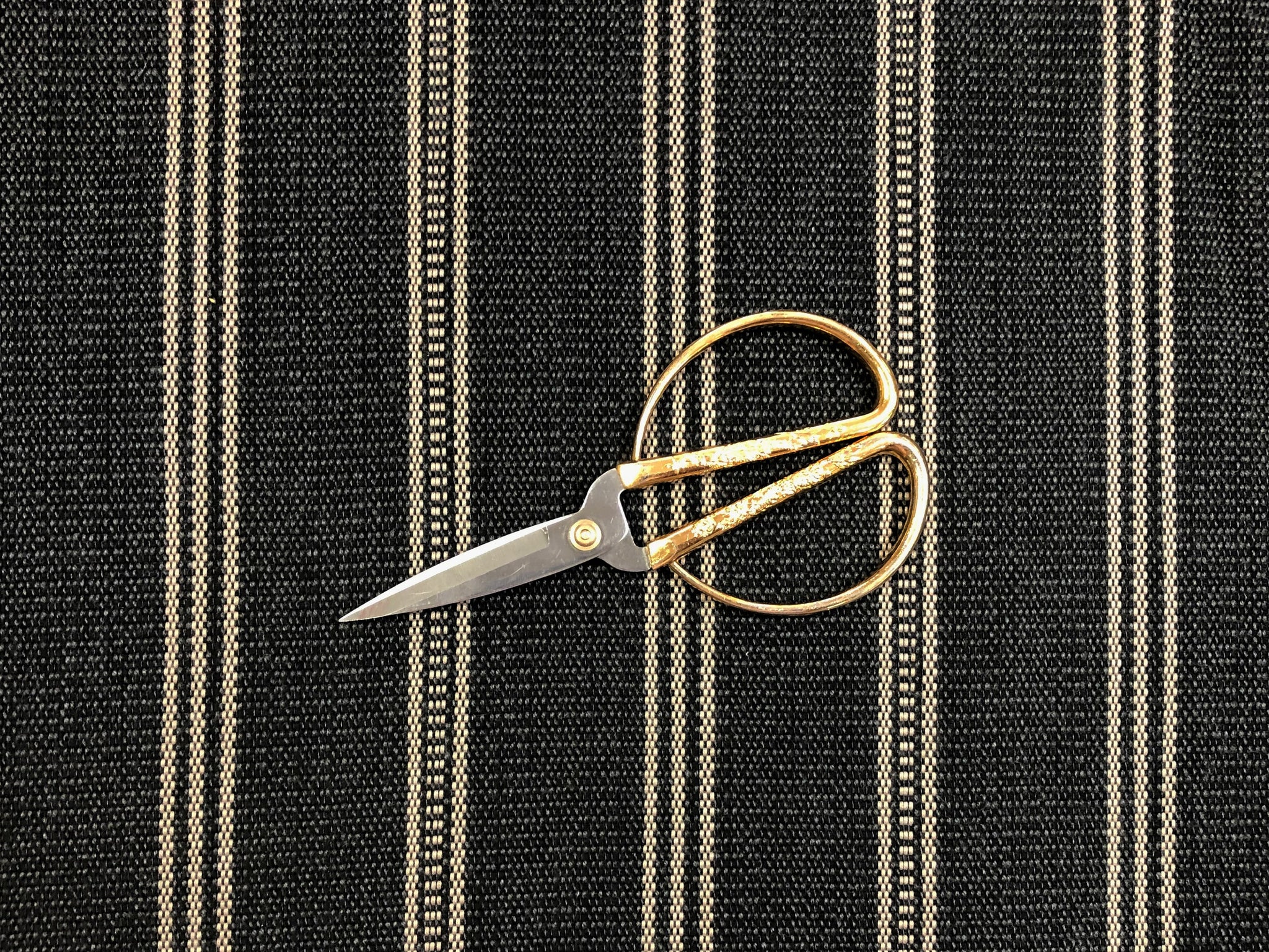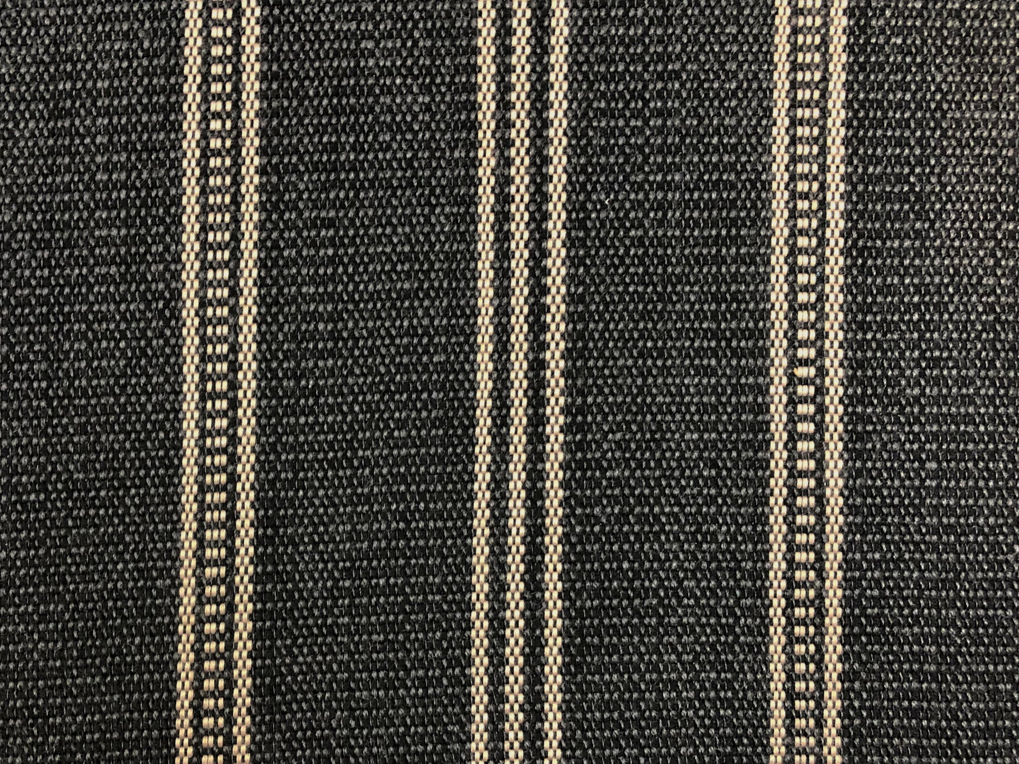 55" wide designer water and stain resistant mid century modern stripe upholstery fabric in charcoal grey and taupe. Price is per yard. If you purchase more than one yard, the fabric comes in one yard pieces. Let us know if you need more than what is available in our store.