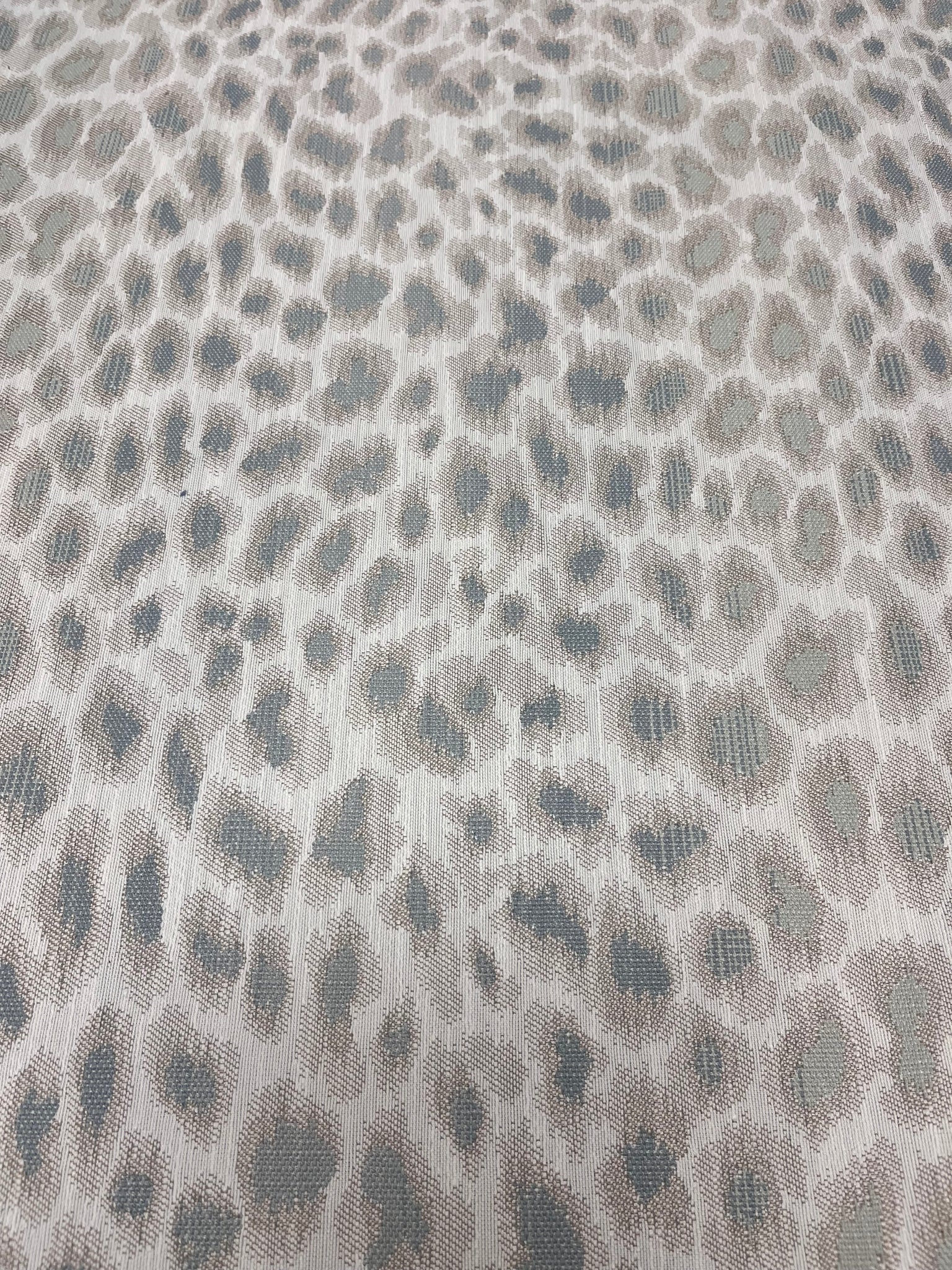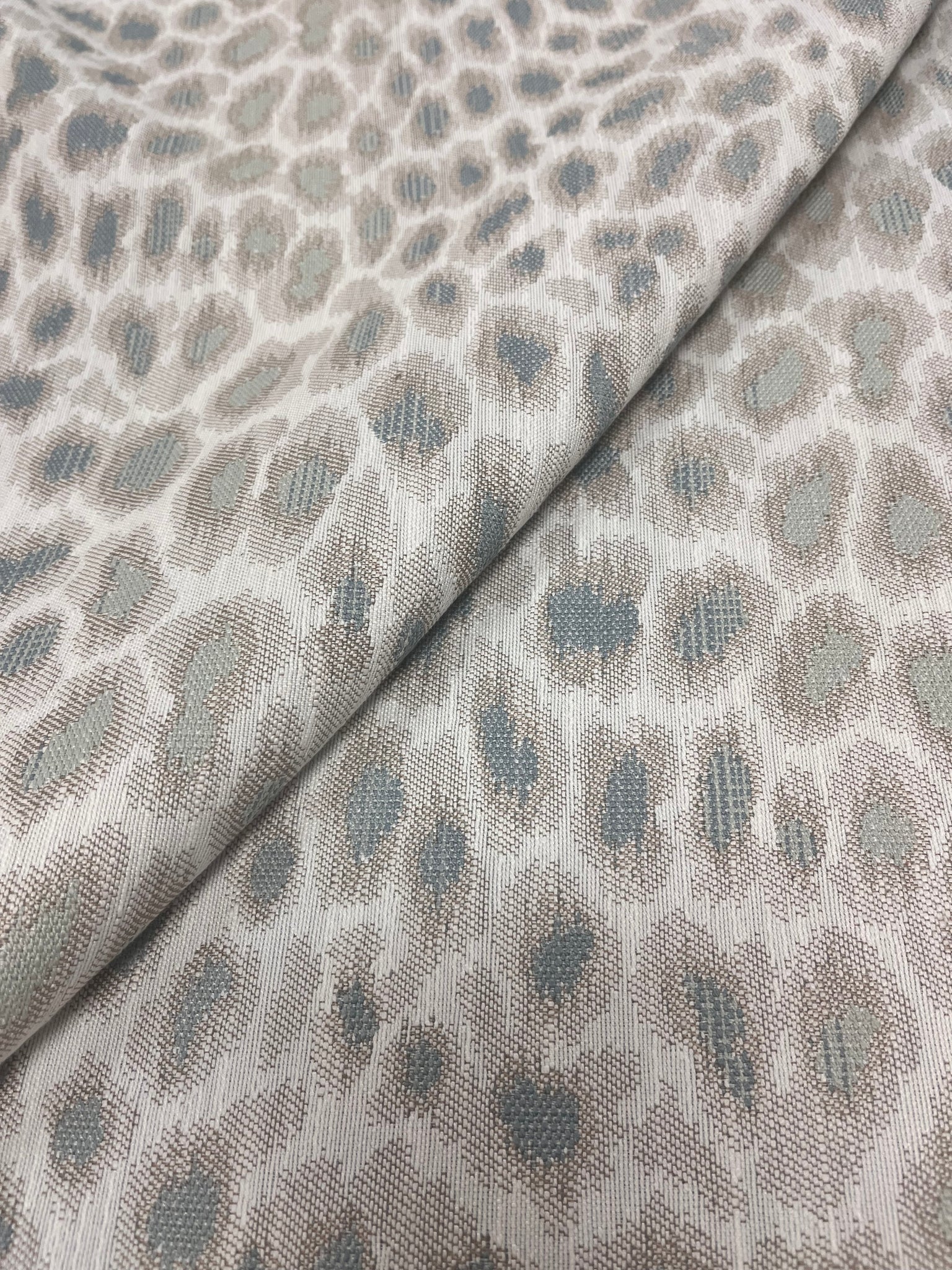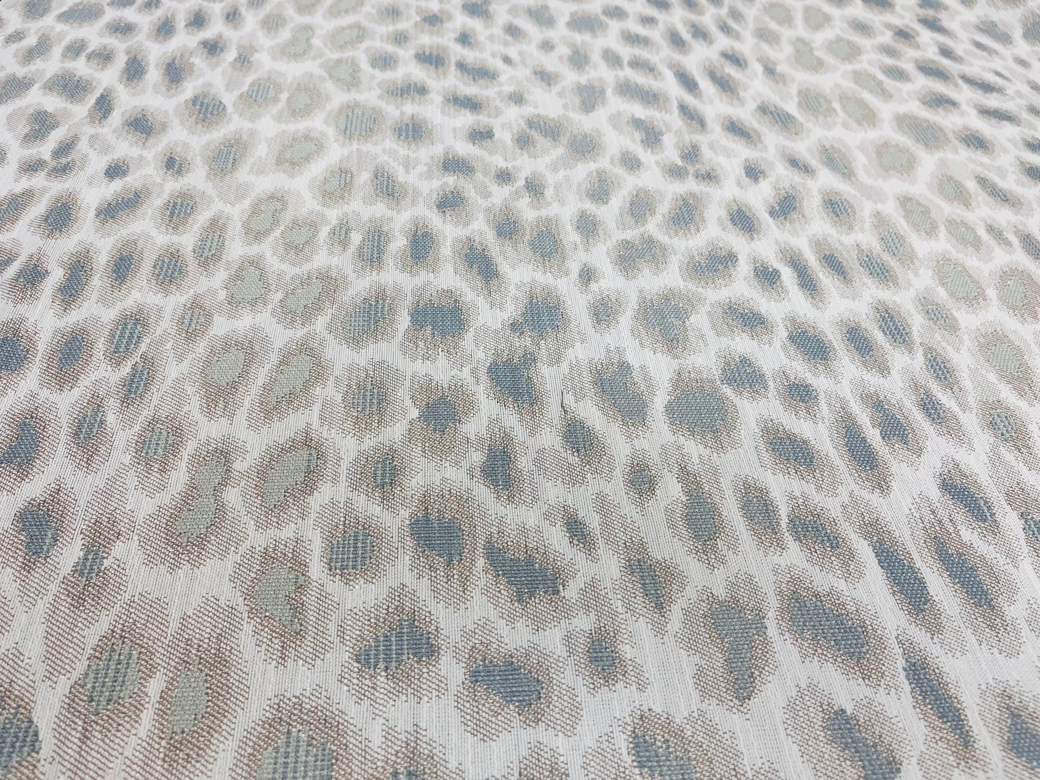 58” wide water and stain resistant performance fabric in seafoam, beige and ivory color scheme with a versatile cheetah pattern. Price is per yard.