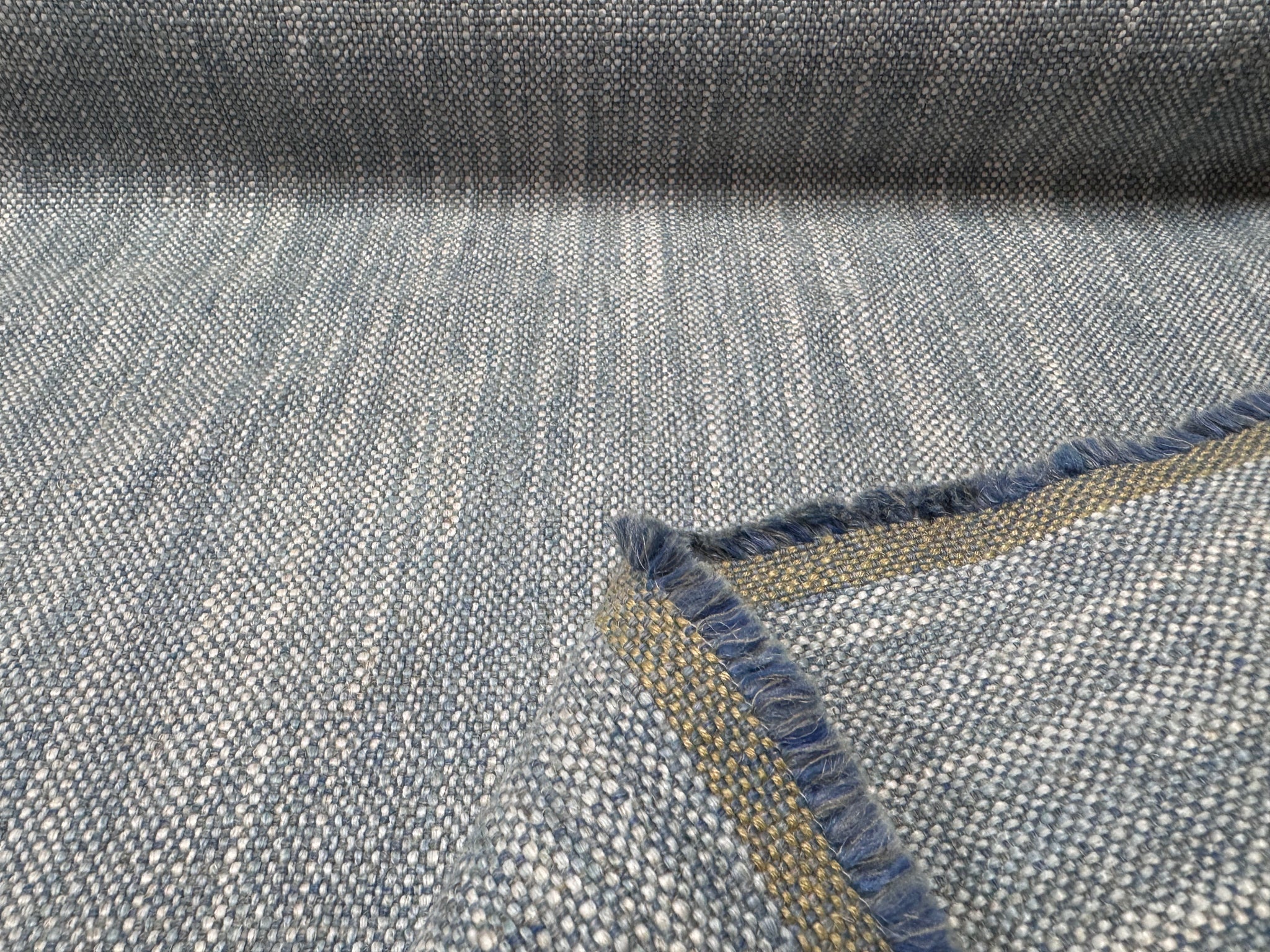 56” wide Kravet Design blue and gray tweed-like textile is part of the Performance Crypton Home collection, a line of durable and stain-resistant.