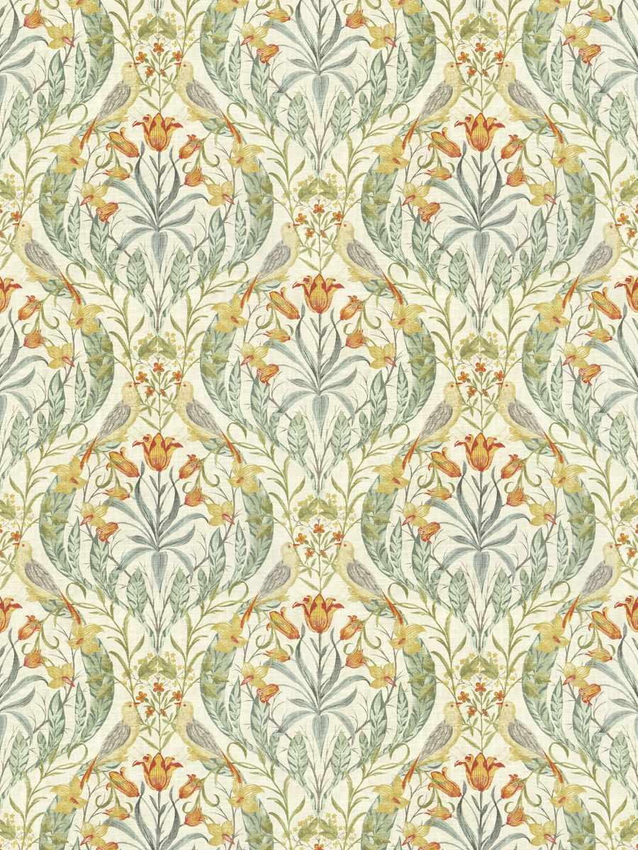 Linen Viscose Cream Orange Teal Green Mustard Grey Bird Floral Upholstery Drapery Fabric
