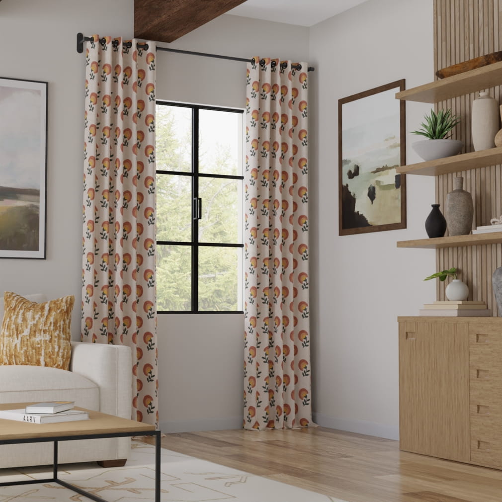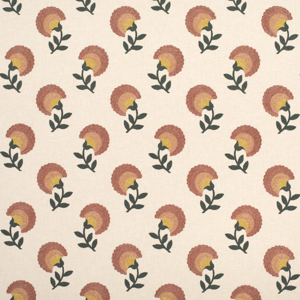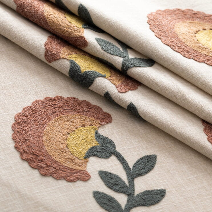 Beige Mauve Mustard Gold Green Floral Embrodiered Drapery Fabric