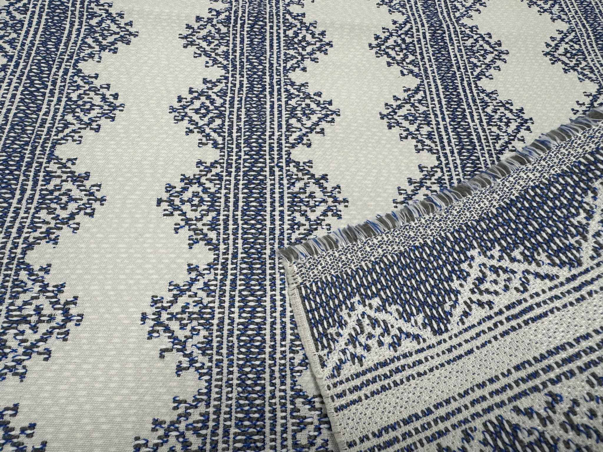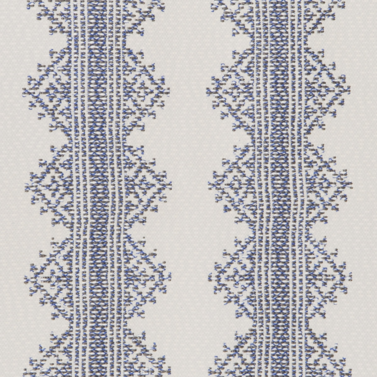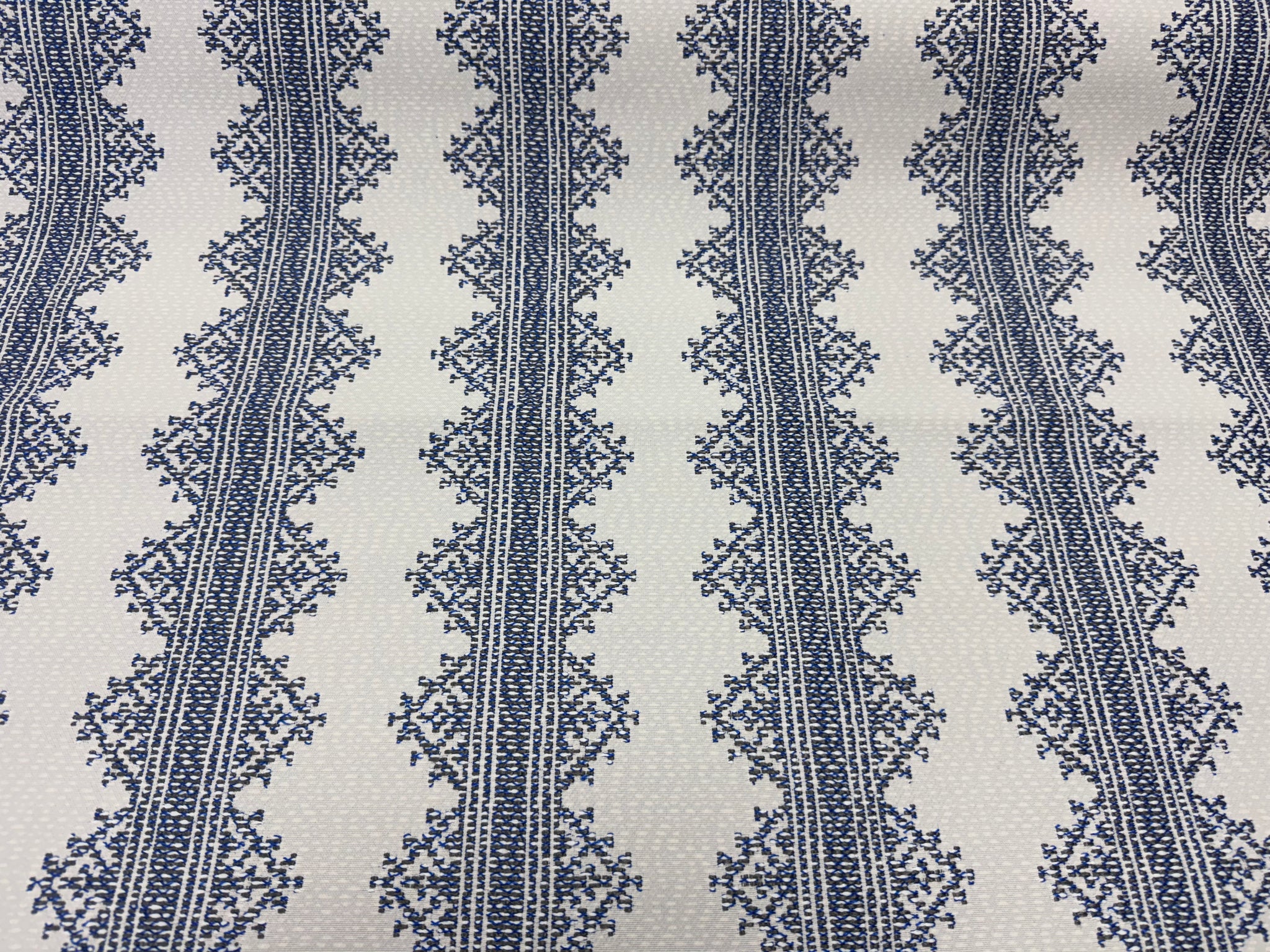 Rosemary Hallgarten Eden Adrift Blue Off White Indoor Outdoor Ethnic Stripe Upholstery Fabric STA 1886