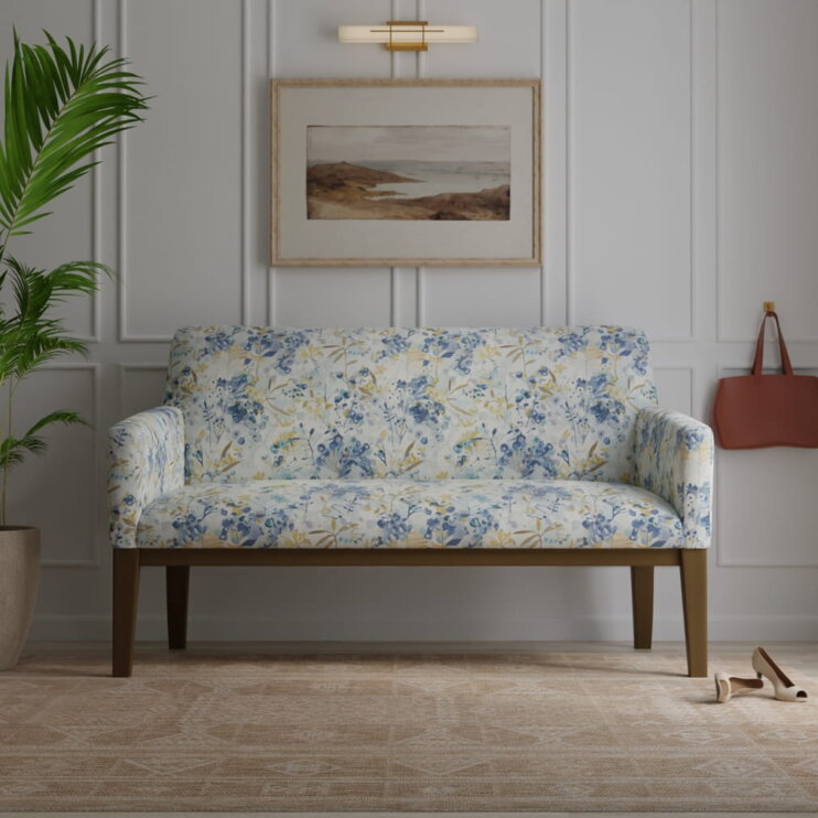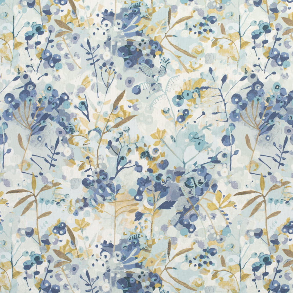 Seafoam Aqua Teal Mustard Brown Teal Cream Purple Abstract Floral Upholstery Drapery Fabric / Dusty Blue