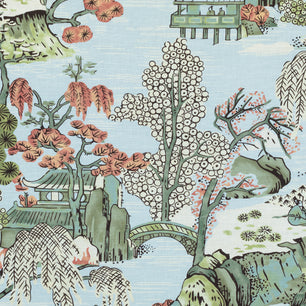 Made to order Roman shade in Thibaut's Asian Scenic fabric in the following widths:
