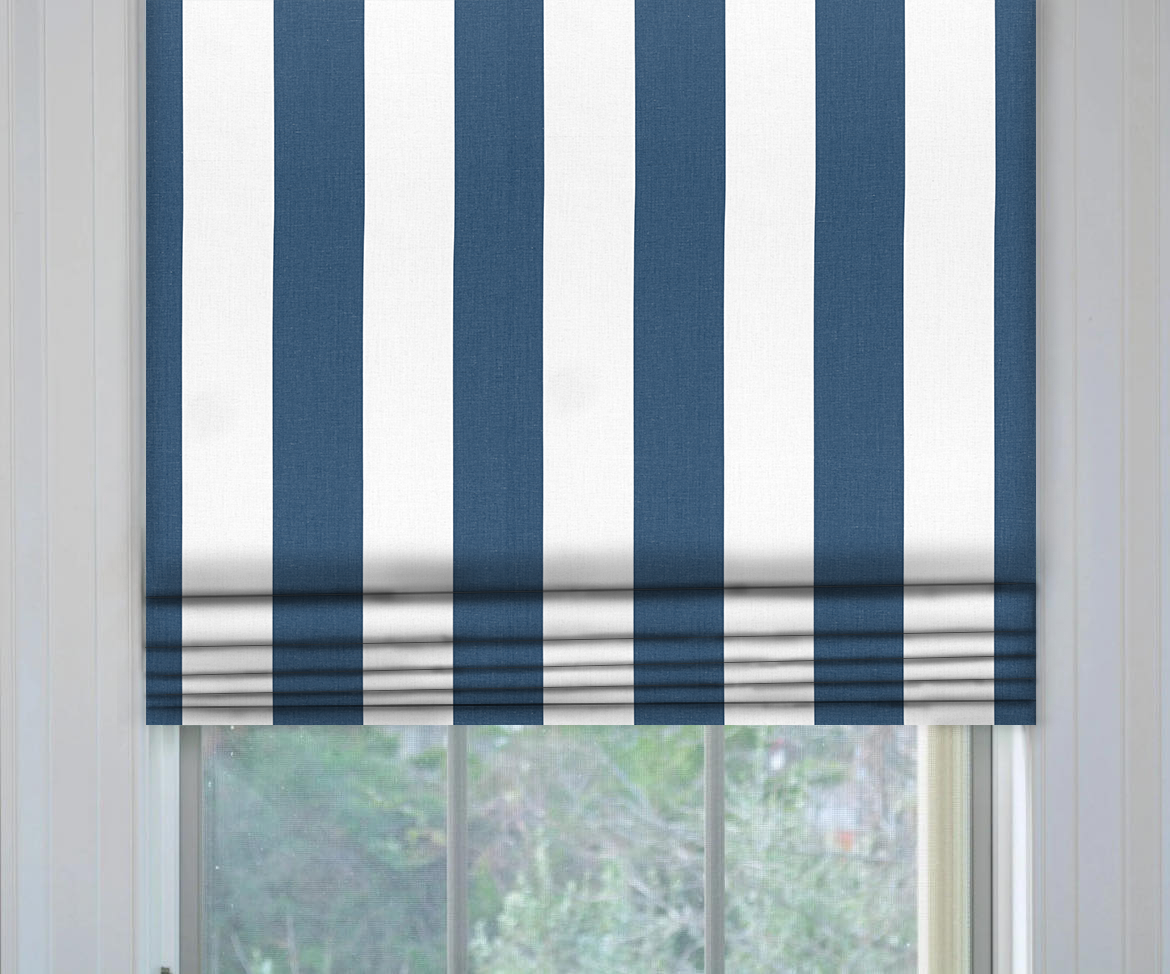 Made to order Roman shade in Thibaut's Bergamo Stripe fabric in the following widths:
