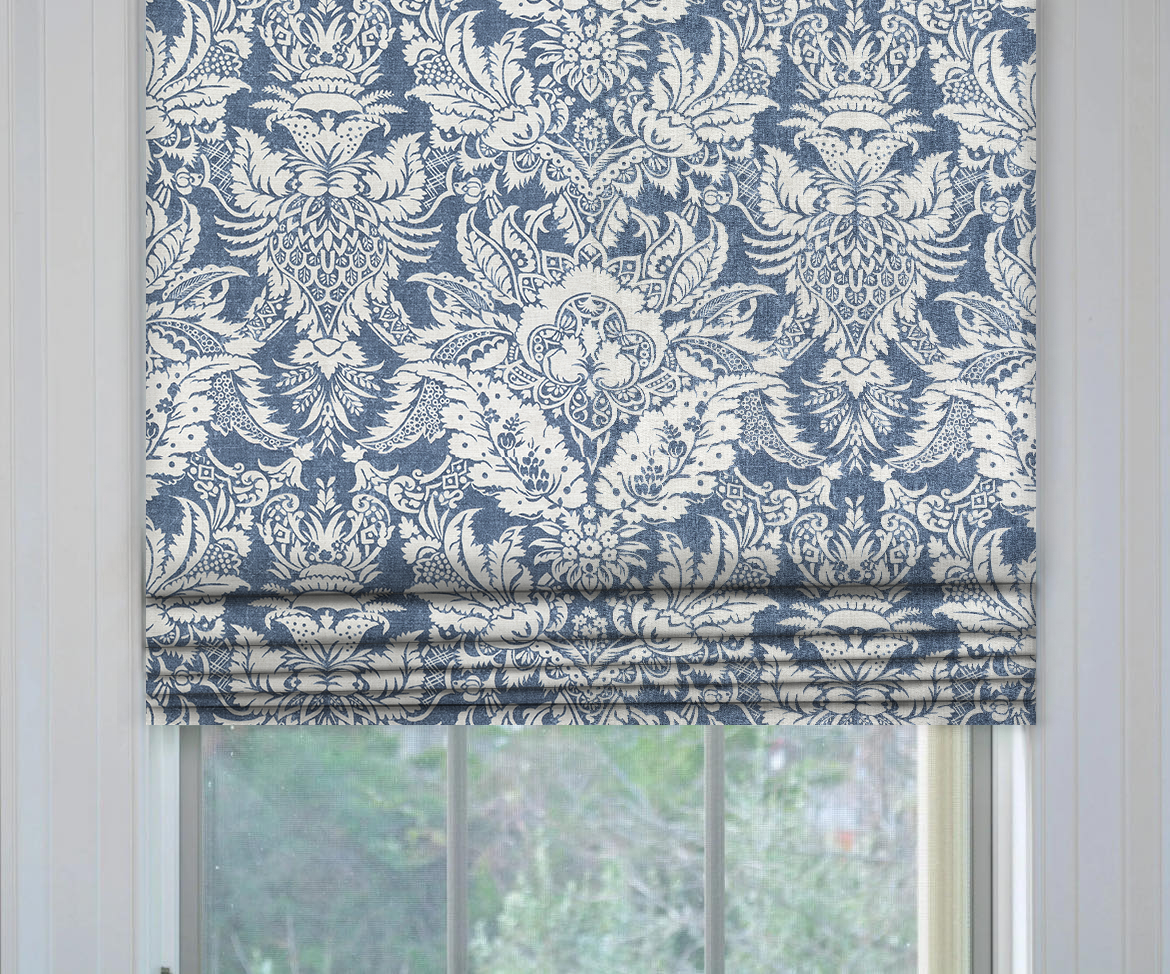 Made to order Roman shade in Thibaut's Chardonnet Damask fabric in the following widths: