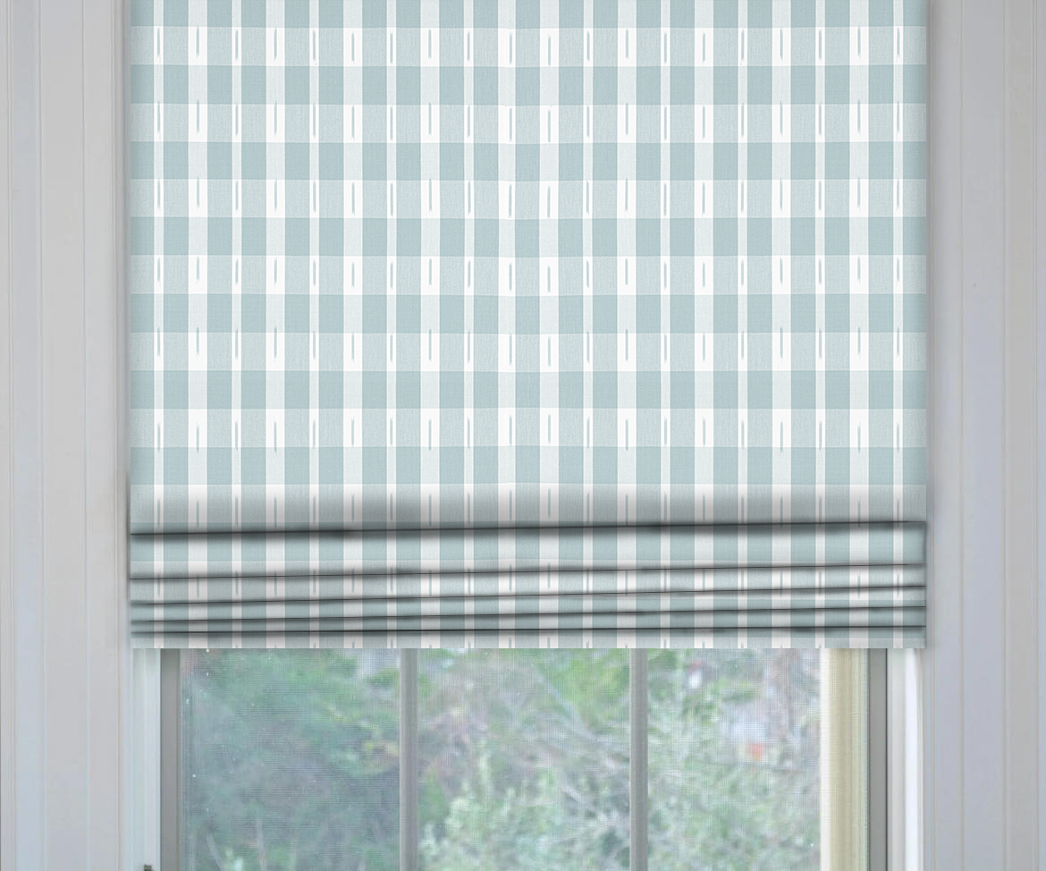 Made to order Roman shade in Thibaut's Ellastone Check Herriot Way fabric in the following widths:
