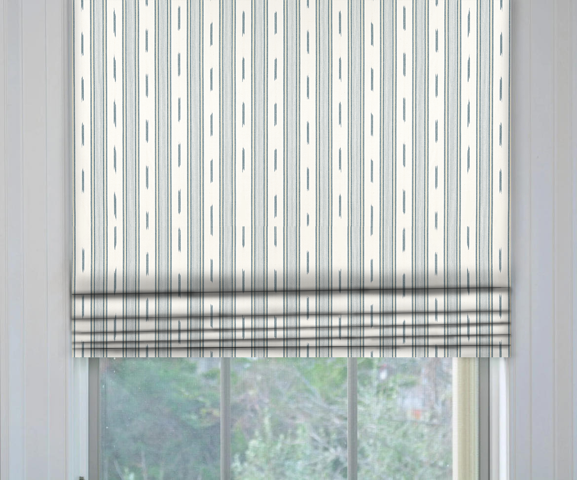 Made to order Roman shade in Thibaut's Odeshia Stripe fabric in the following widths: