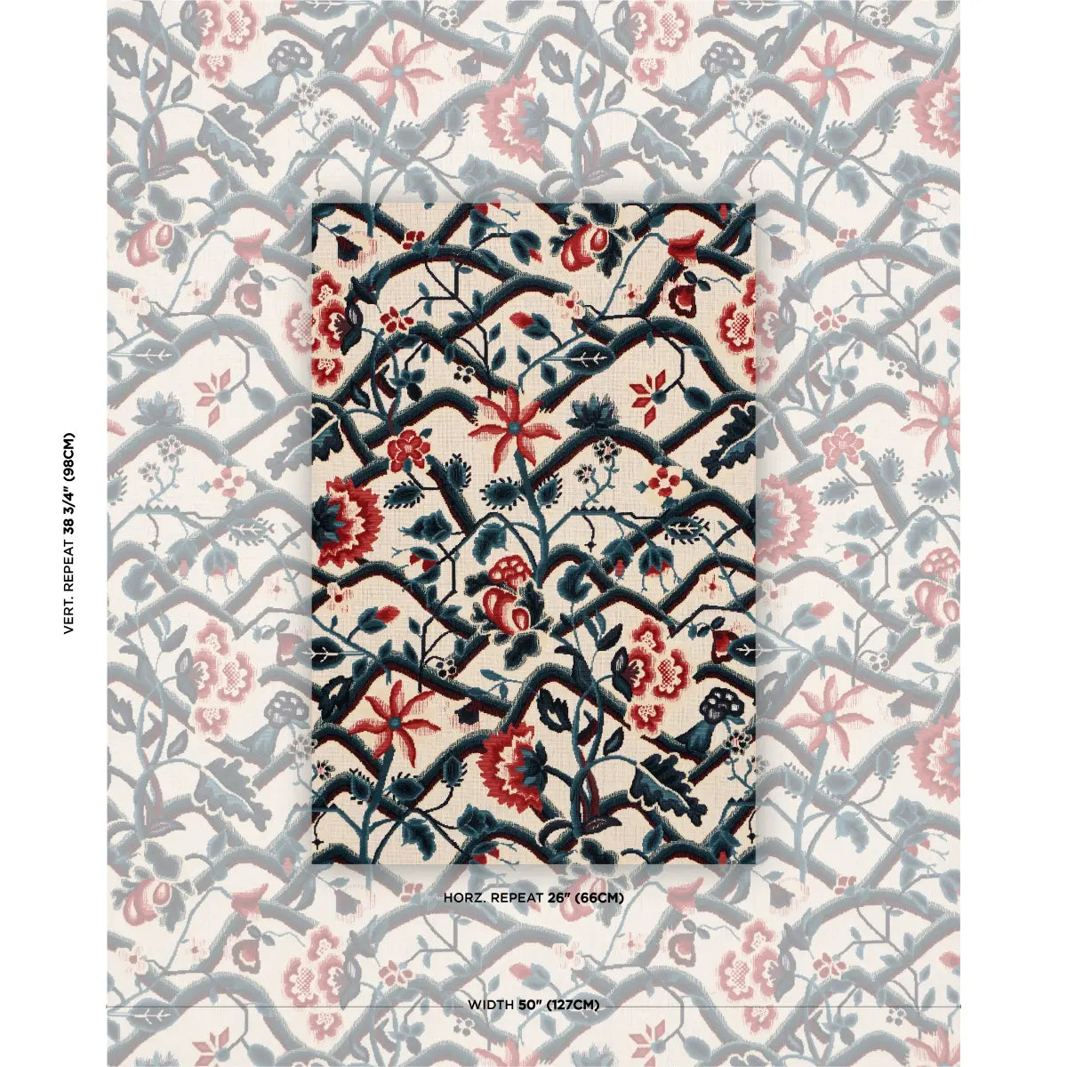 Schumacher Jacobean Garden Velvet Fabric 84821 / Cinnabar & Peacock