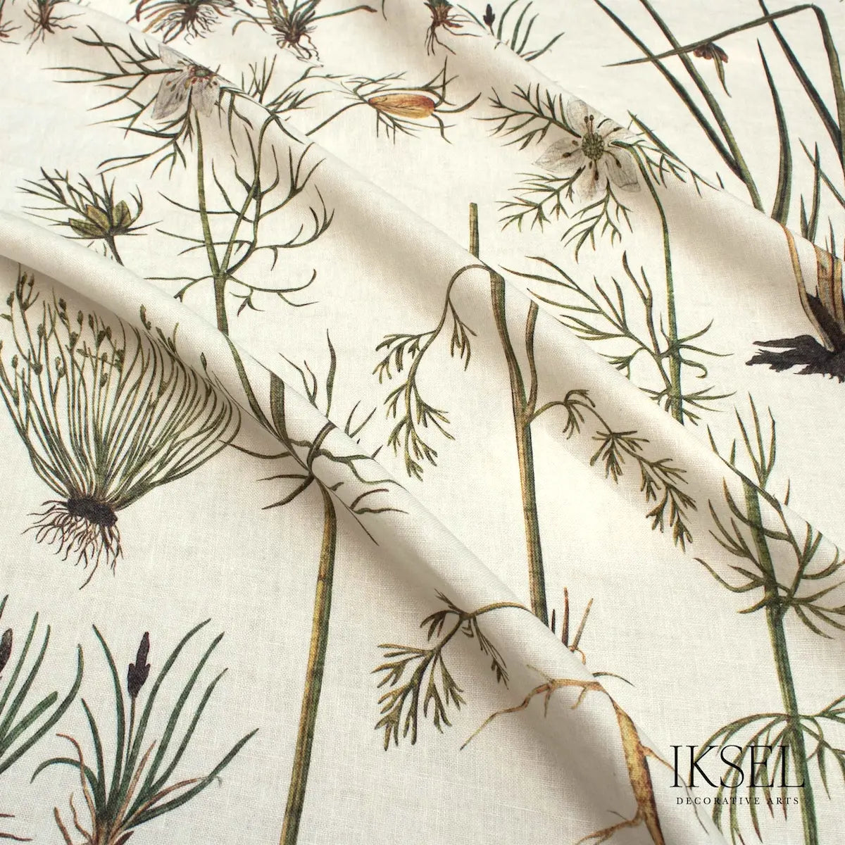 Featuring a wonderful collection of plants painted with remarkable precision by a 16th-century botanist, Herbier is a fresh and highly decorative floral pattern printed on a soft linen ground. Also available as a wallpaper. Created and produced by Iksel Decorative Arts and distributed exclusively by Schumacher in the U.S. and Canada.