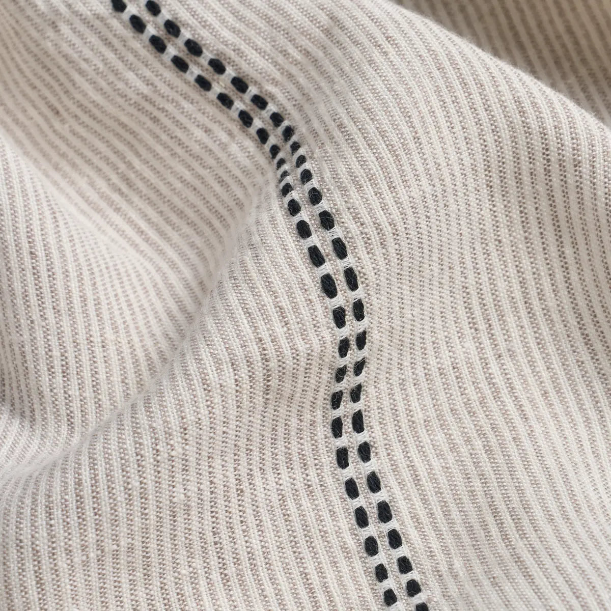 A lightweight linen with a fine woven stripe, Clyde Sheer is a useful double-width fabric that layers easily with other patterns and filters light beautifully.