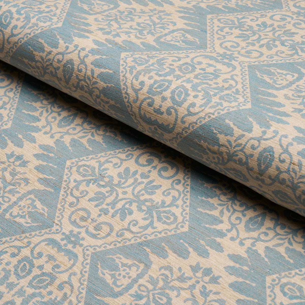 Schumacher Berkeley Hand Printed Silk Fabric 182701 / Cornflower