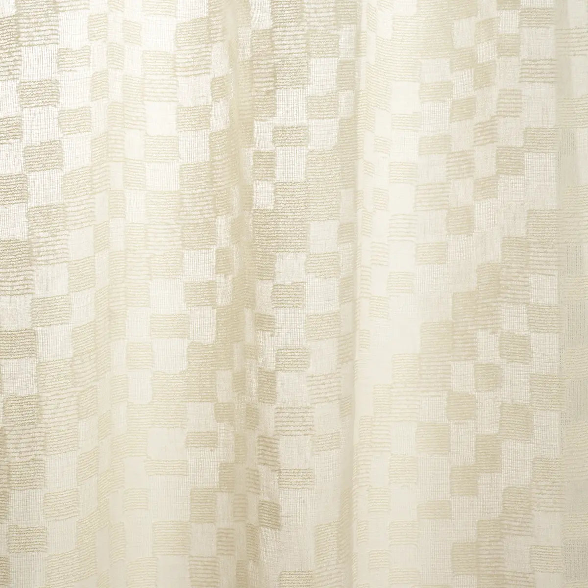 Woven in Italy from a blend of linen, cotton, and wool, Cadence features an irregular offset check highlighted by fil coupé accents. A unique interplay of weave structures and both fine and bouclé yarns gives this modern double-width sheer extraordinary texture and a sophisticated, translucent nature.