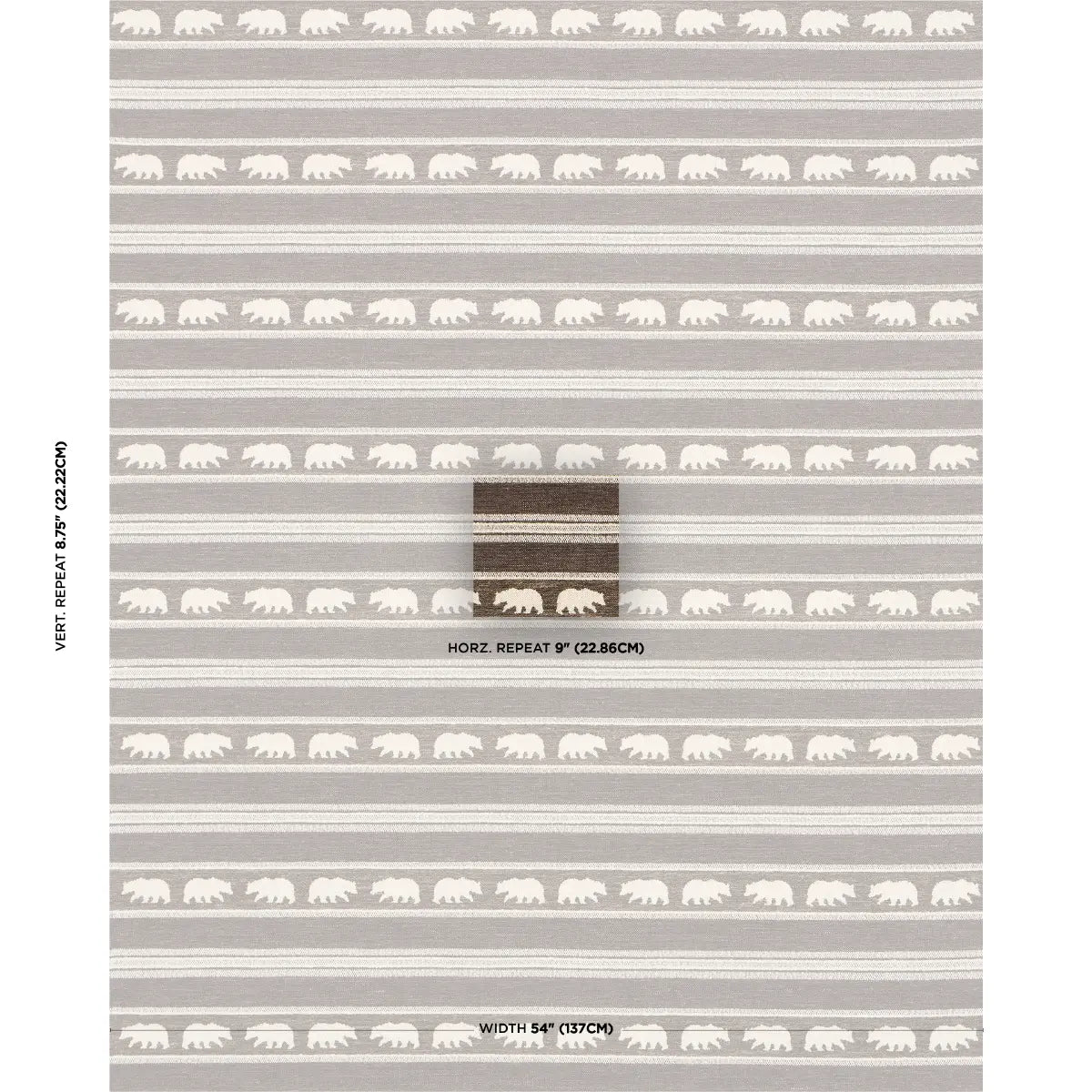 This simple blanketlike woven stripe is animated by silhouettes of roaming bears. With its soft hand and substantial weight, Koda Stripe is a wonderful multitextured medium-scale fabric that lends a playful touch to furniture or pillows.