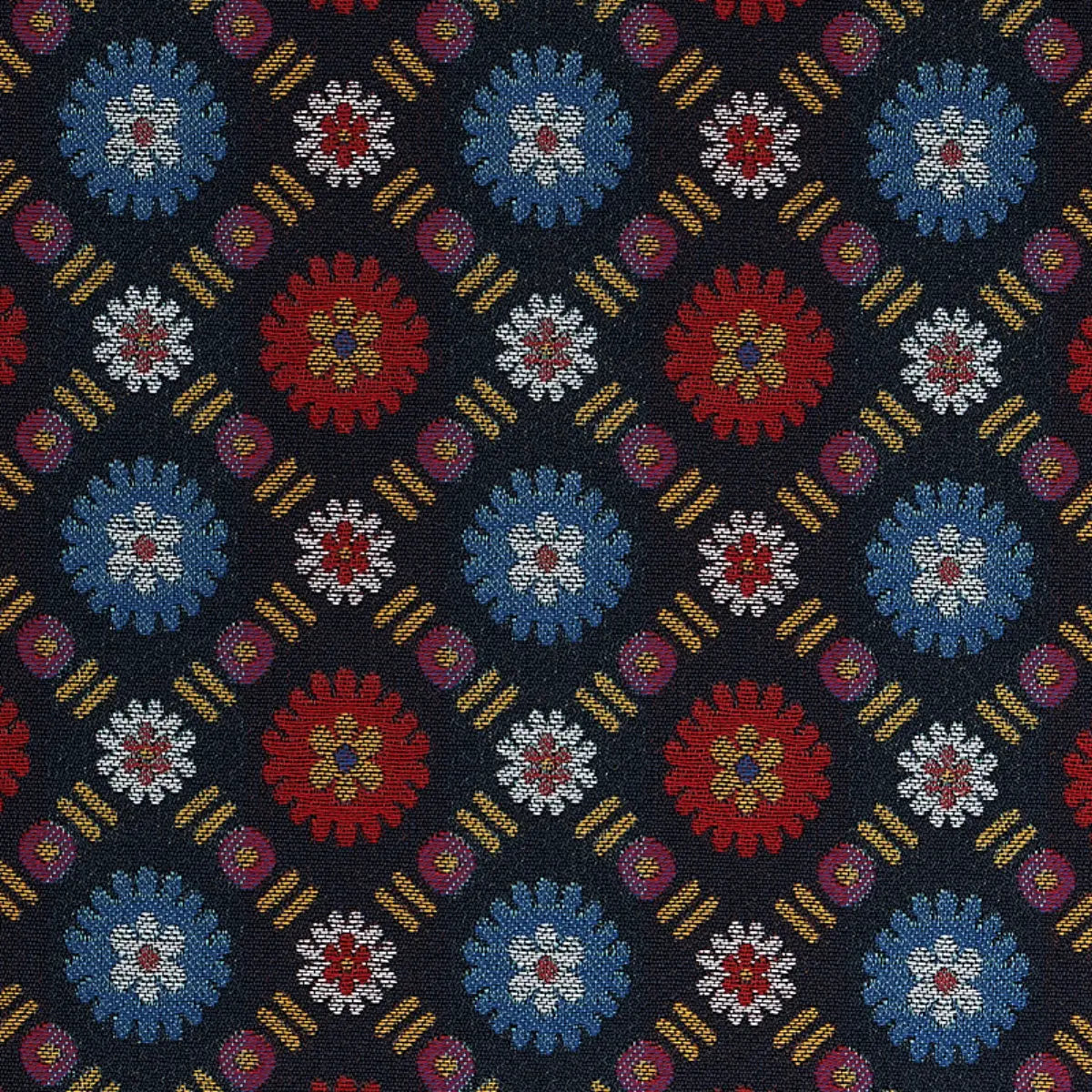An intricate lattice design with folkloric flowers, Larissa in jade is a fresh take on a time-honored pattern. Its small scale and sturdy jacquard weave make it easy to use and perfect for upholstery. Part of the Cabana collection; also available as a wallpaper.