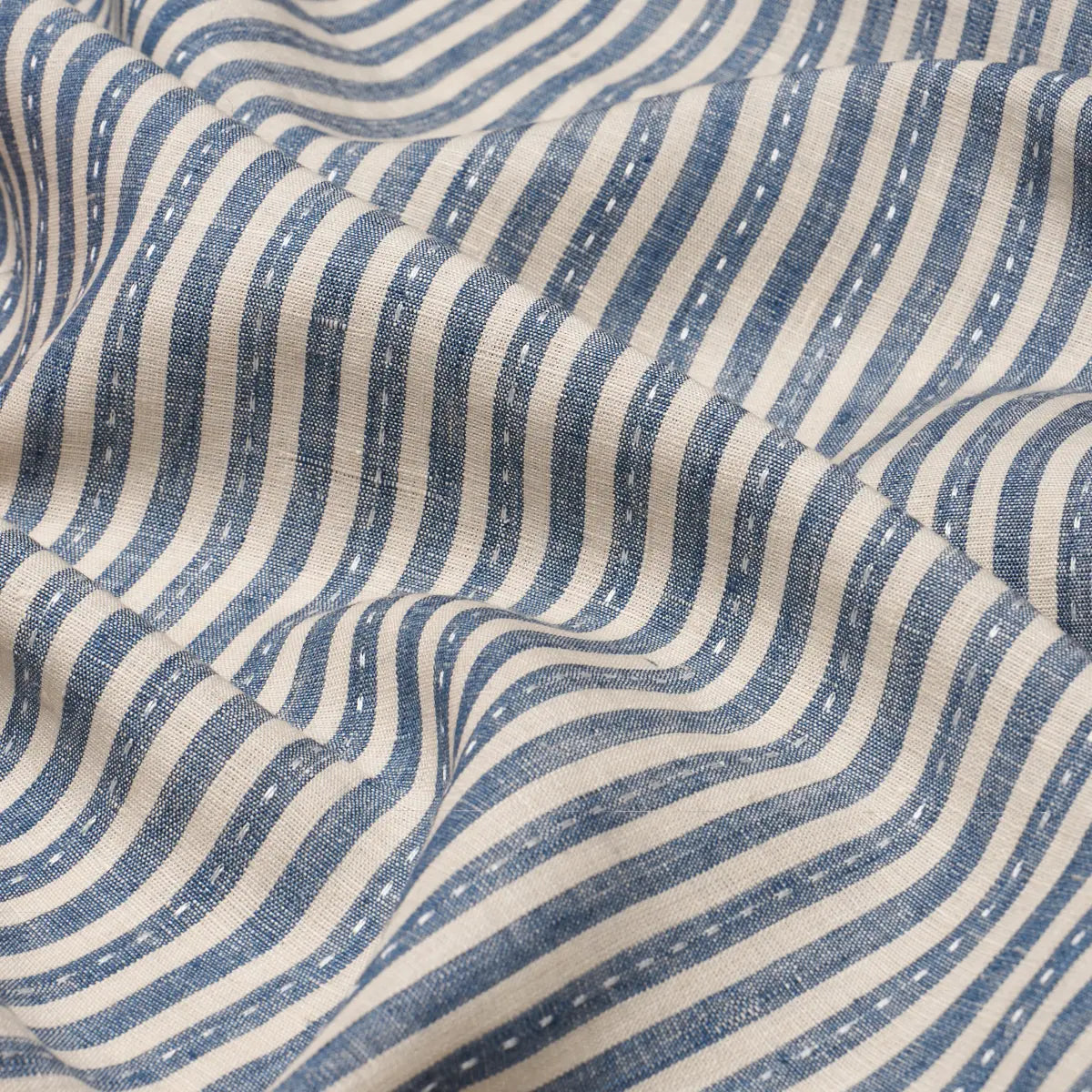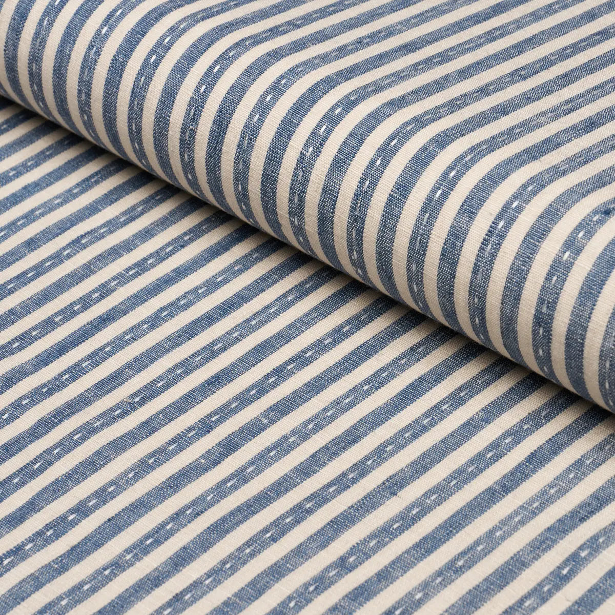 Printed on a linen-hemp blend with a running-stitch detail, Mathis Ticking Stripe is an interesting, textural take on traditional mattress ticking. Casual and easy to live with, this is a classic, versatile fabric you can turn to again and again for upholstery, pillows, and window treatments.