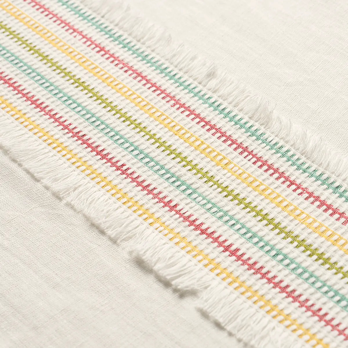 Fashion comes home with this wonderfully stylish casement that has nice woven stripes and playful, hand-cut fringe.
