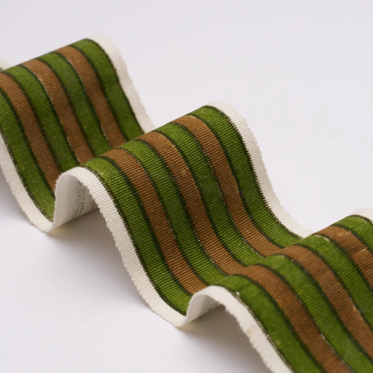 Designed in the U.K. and block-printed by hand in India, Molly Mahon’s Arya Stripe Hand Block Trim adds a bold graphic touch to pillows, upholstery, and window treatments. Perfectly imperfect, this 100% cotton tape features subtle irregularities that are inherent to its hand-crafted beauty.