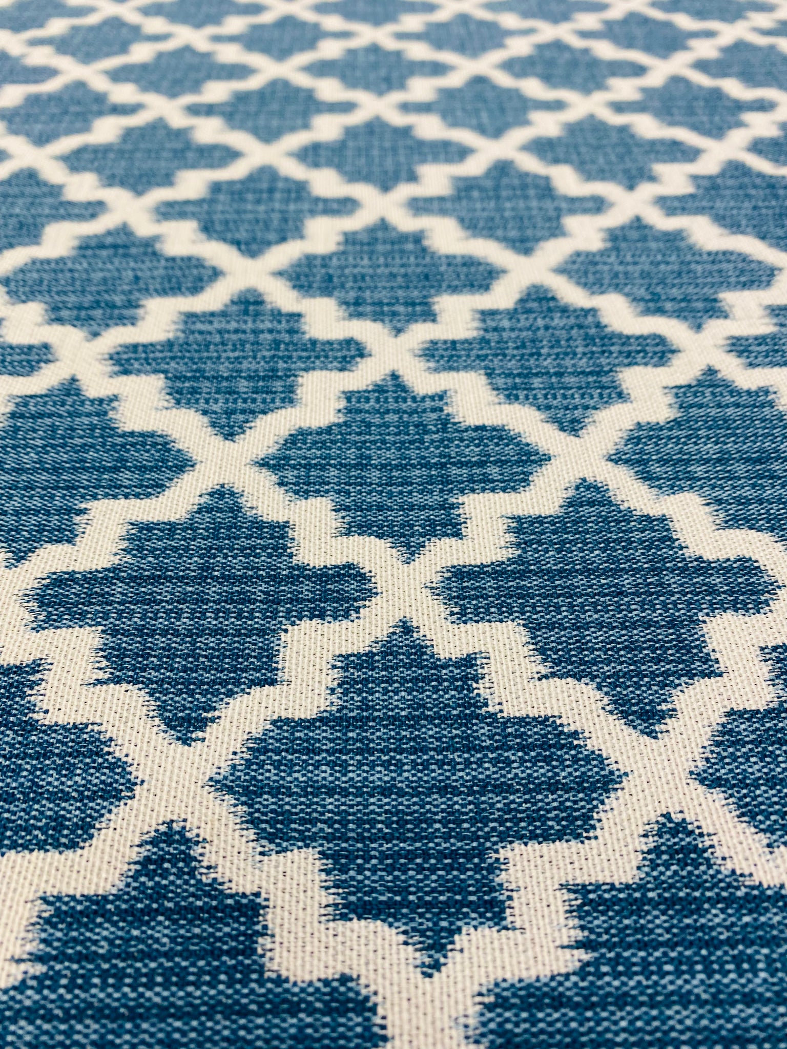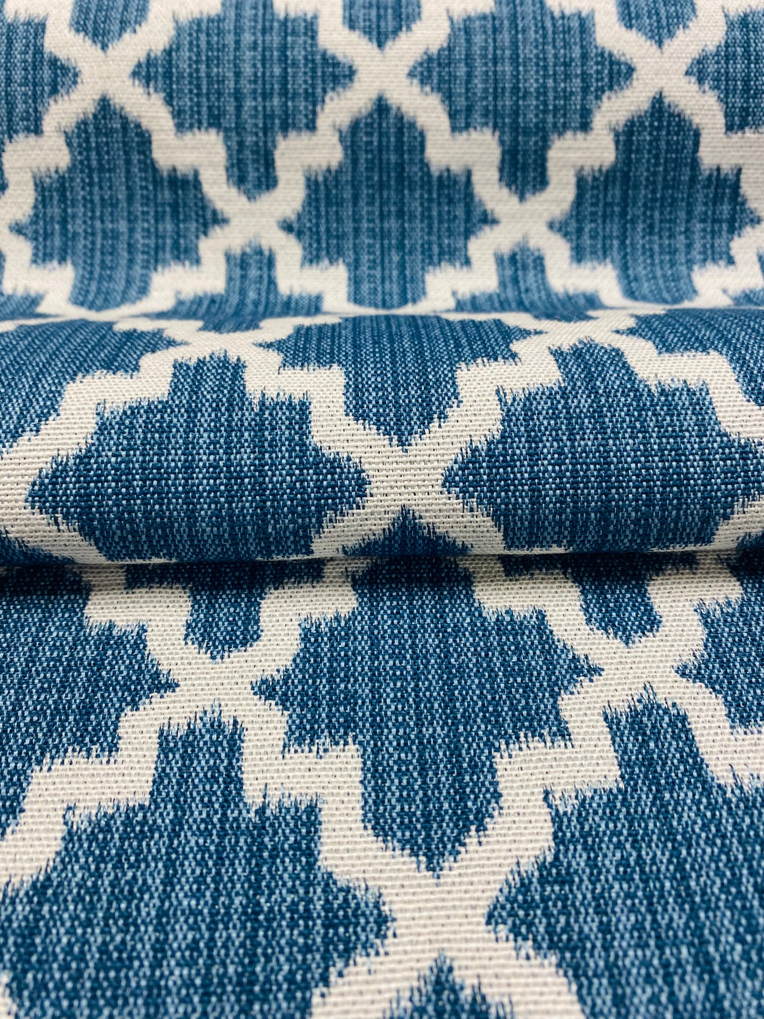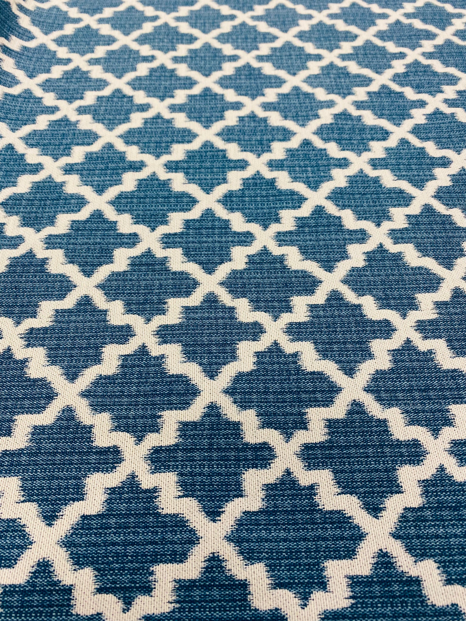 1.3 Yard of French Blue Off White Trellis Geometric Indoor Outdoor Water & Stain Resistant Upholstery Drapery Fabric WHS 3123