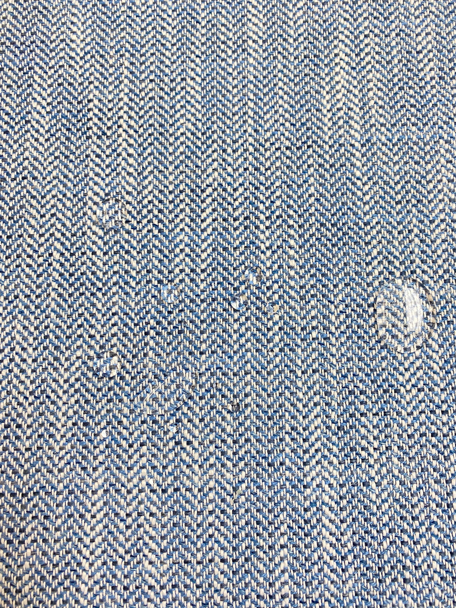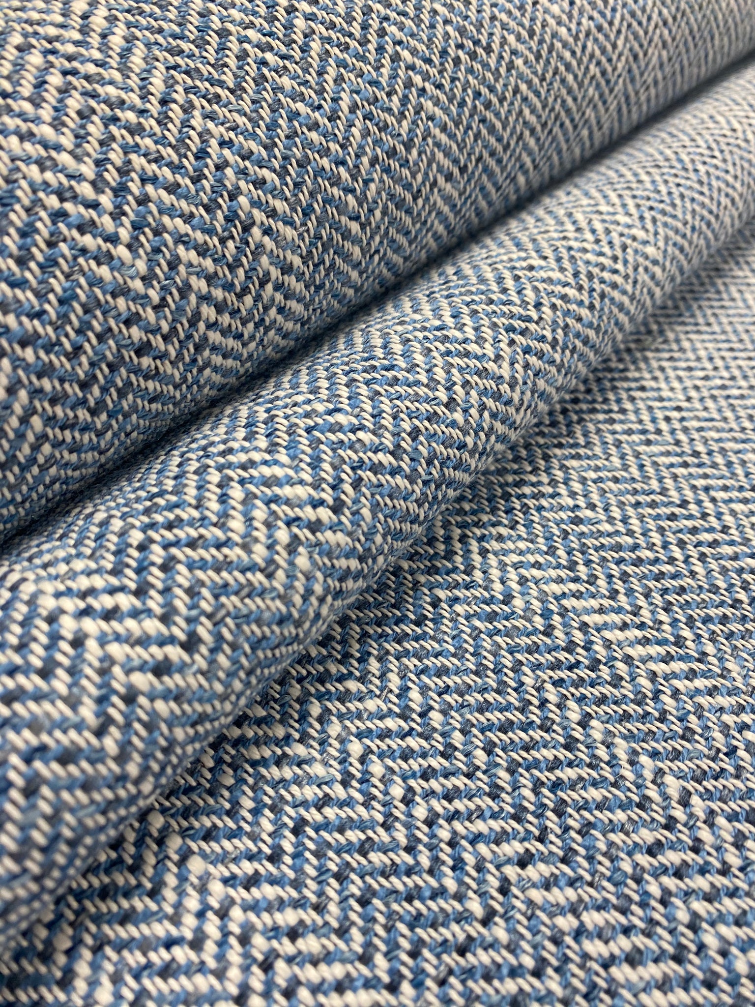 1.5 Yard 56" wide of designer water & stain resistant herringbone geometric MCM Mid Century Modern upholstery fabric in navy blue and white. Price is for entire piece. Let us know if you need more than what is available in our store.