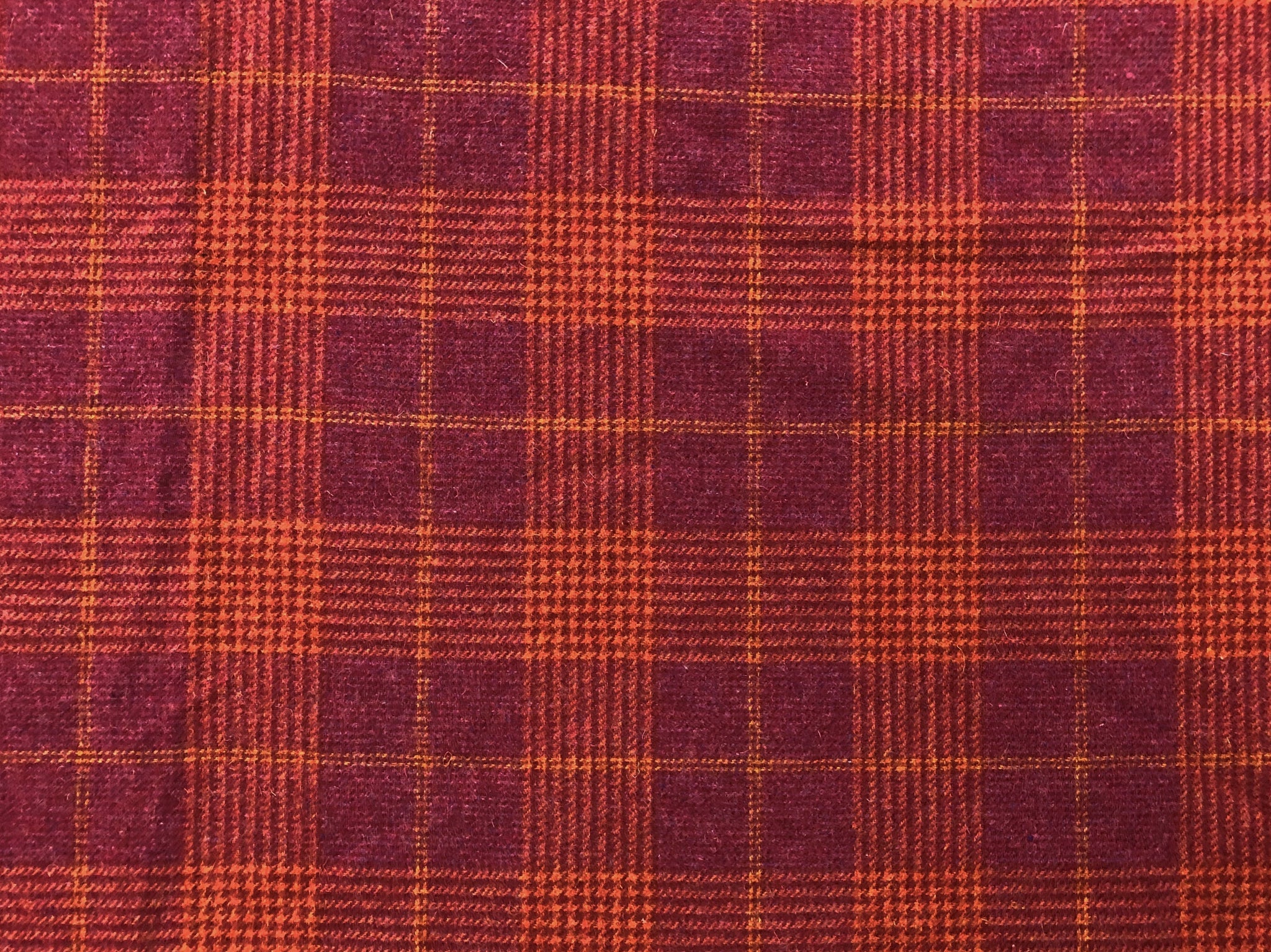 1.5 Yds Designer Magenta Pink Orange Plaid Tweed Upholstery Fabric