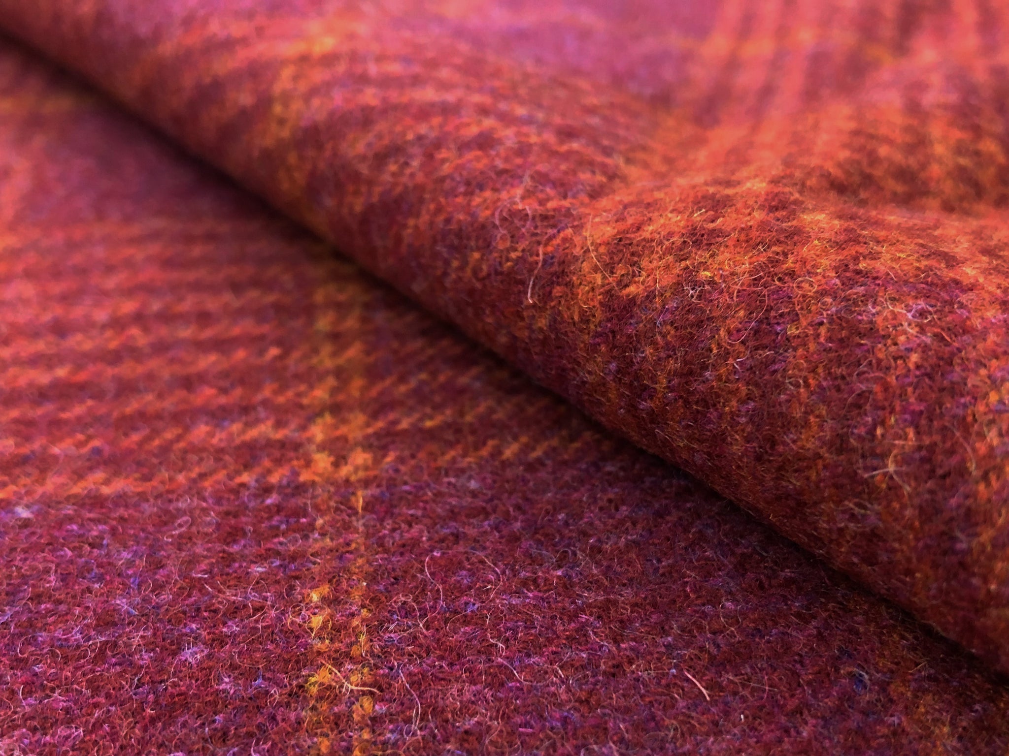 1.5 yards of 57" wide designer plaid tweed upholstery fabric in magenta, pink, and orange. Price is for entire piece. Let us know if you need more than what is available in our store.