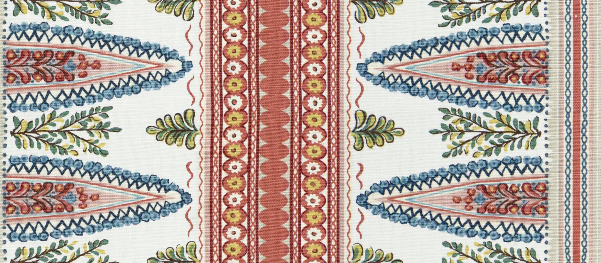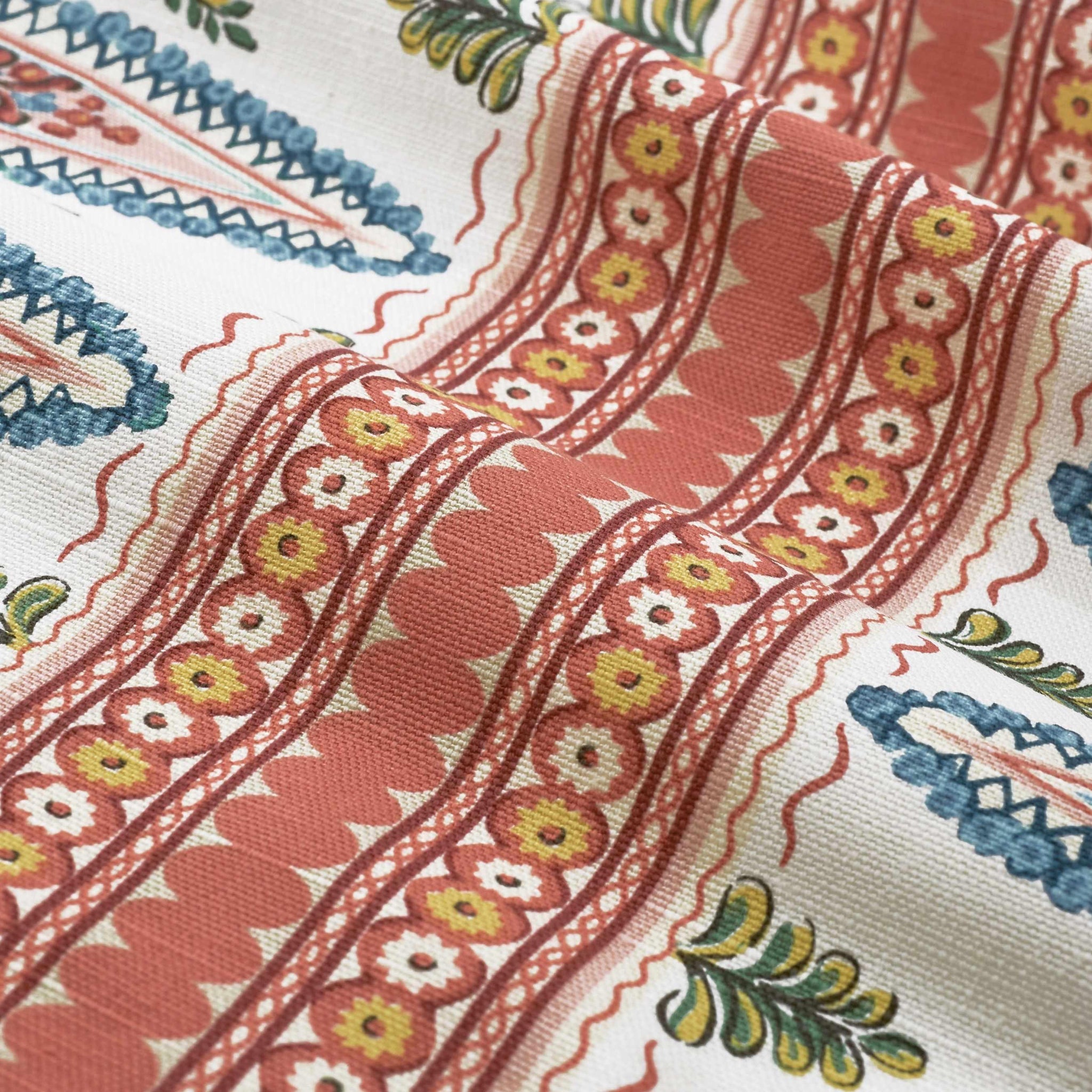 Linen cotton floral upholstery drapery fabric in coral, blue, white, green and yellow. Price is per yard. Let us know if you need more than what is available in our store.