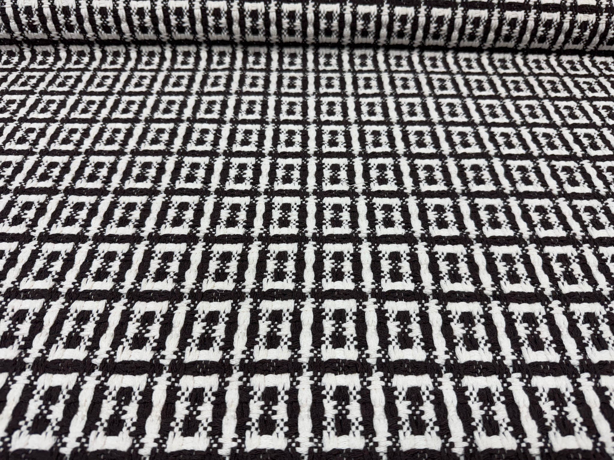 51” wide by 51” lengths Dedar revisits macro tweed with Home Sweet Home, a regenerative, eco-friendly cotton fabric. It awakens spaces with the structured grid of its jacquard pattern, where the two-tone contrast creates a captivating visual effect. The texture exudes an artisanal charm, coupled with a woolly aspect that lends a welcoming effect to the whole.