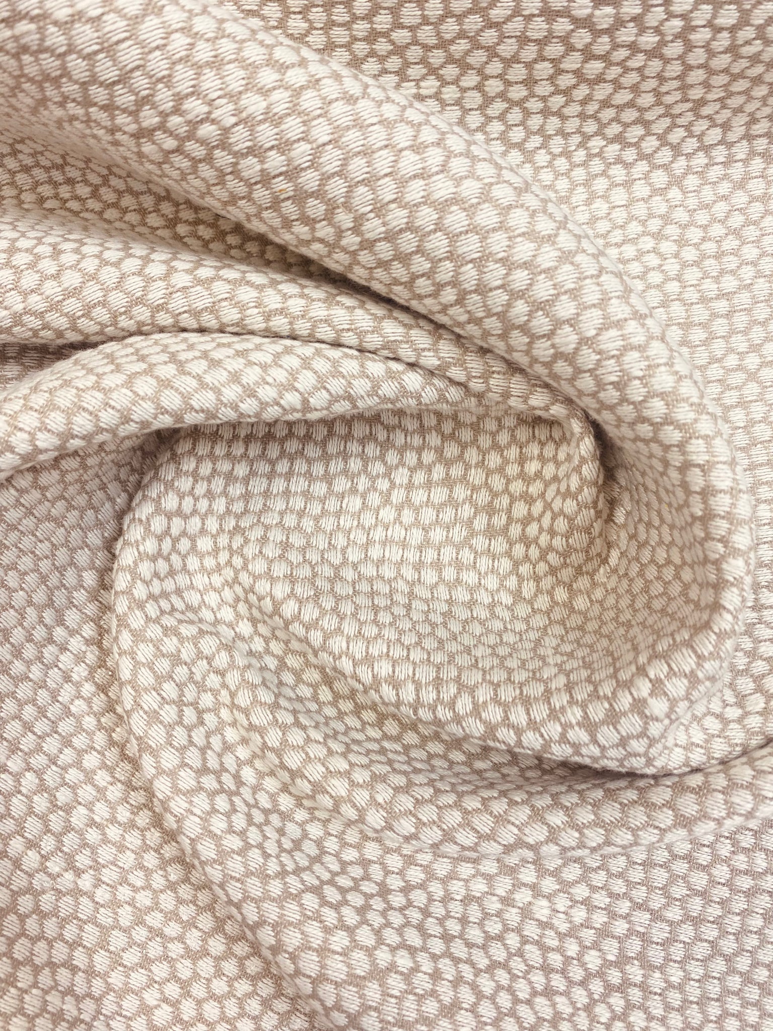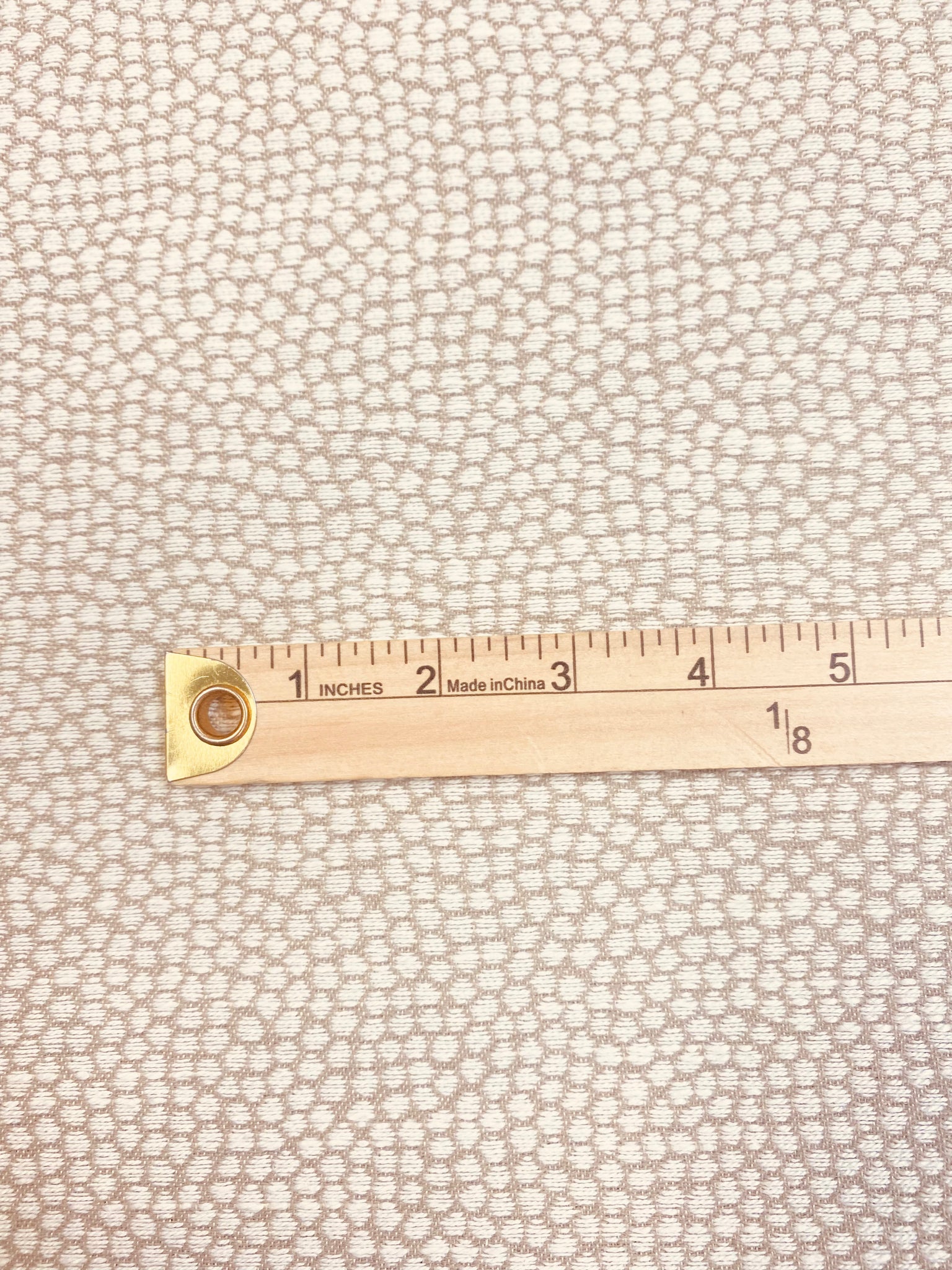 56" wide designer animal pattern small scale water & stain resistant upholstery drapery fabric in beige and cream. Price is per yard. This fabric comes in few several pieces. Let us know if you need more than what is available in our store.