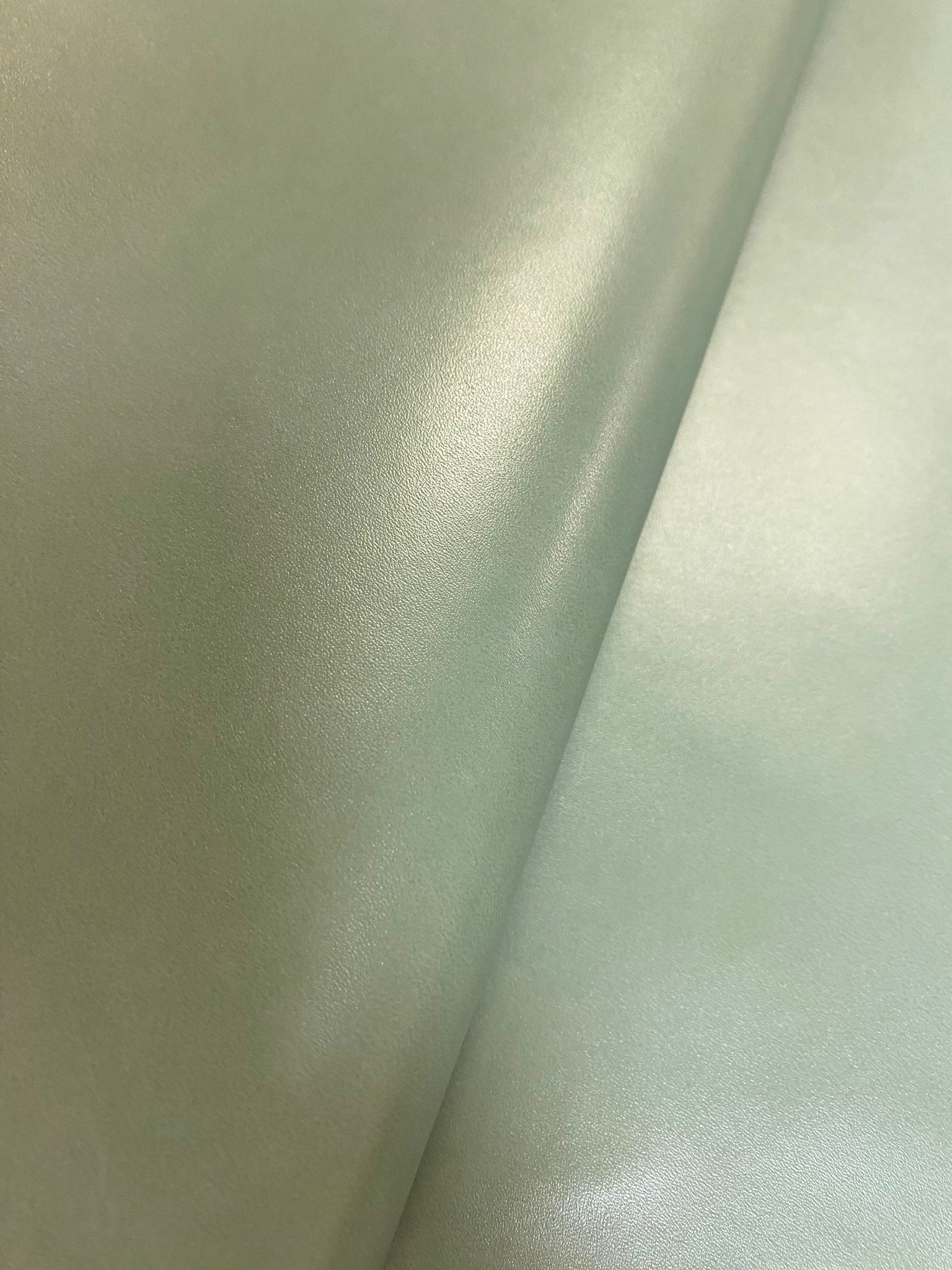 54" wide designer heavy duty faux leather upholstery vinyl in aqua seafoam. Price is per yard. Let us know if you need more than what is available in our store.