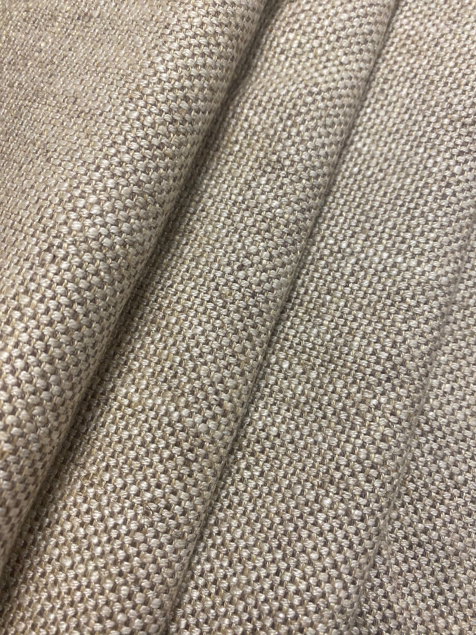 57" wide designer linen tweed MCM Mid Century Modern upholstery fabric in brown and cream. Price is per yard. Let us know if you need more than what is available in our store.